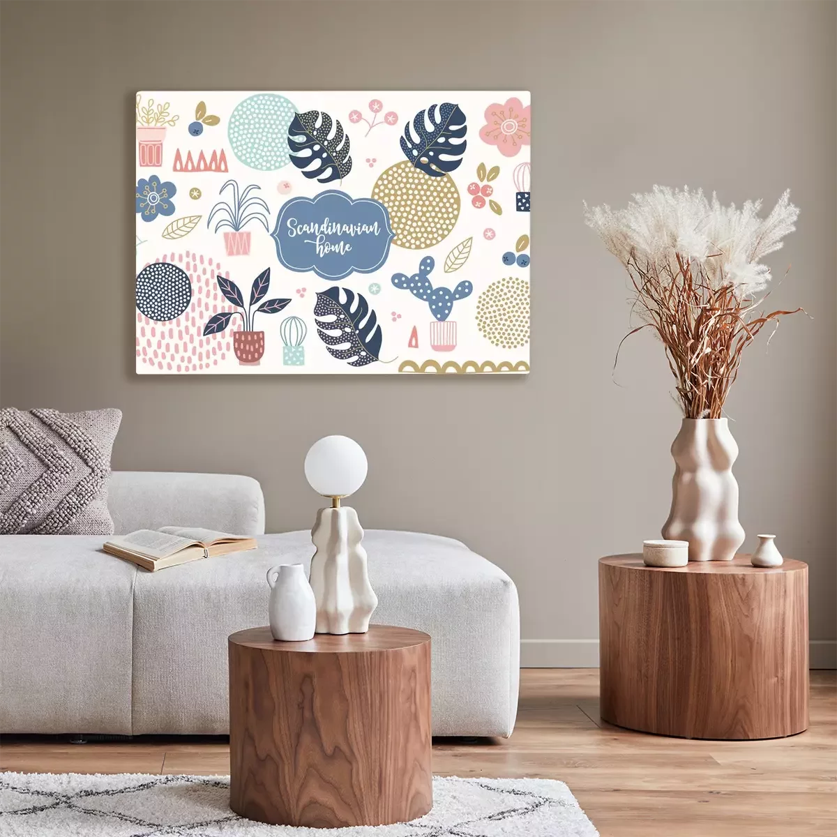 Tableau  Scandinavian design elements - house plants, succulents, monstera leaf, berries, flowers