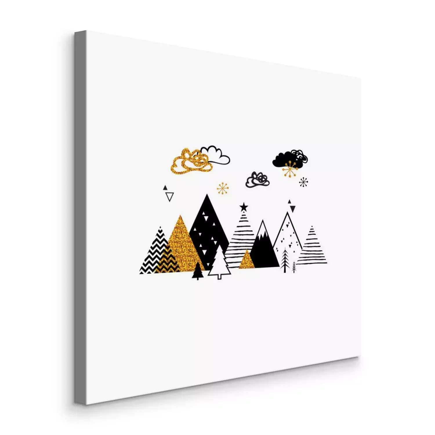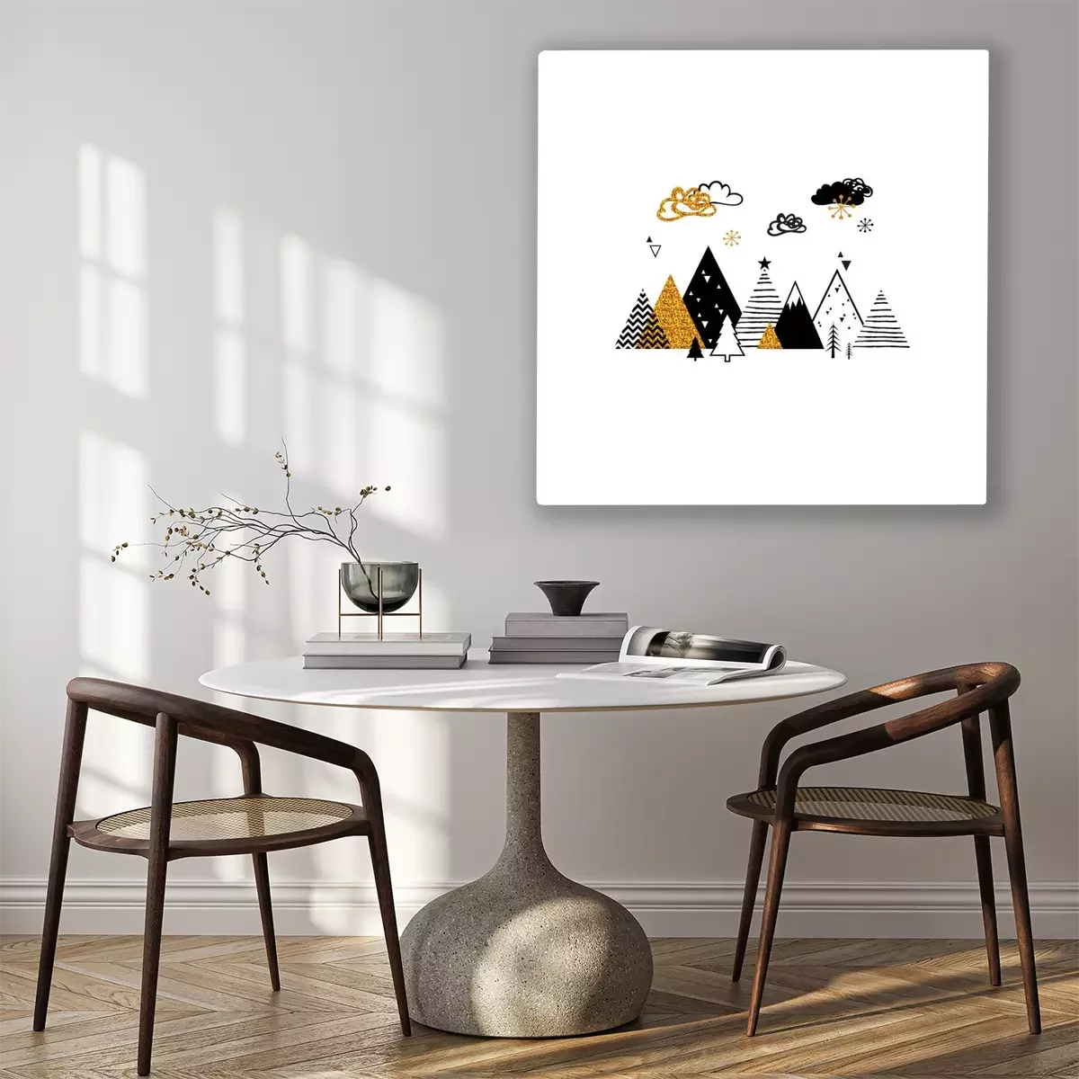 Tableau  Scène d'hiver de Noël abstrait or. Fond de paysage de Noël hiver dans un style scandinave. Illustration vectorielle abstraite