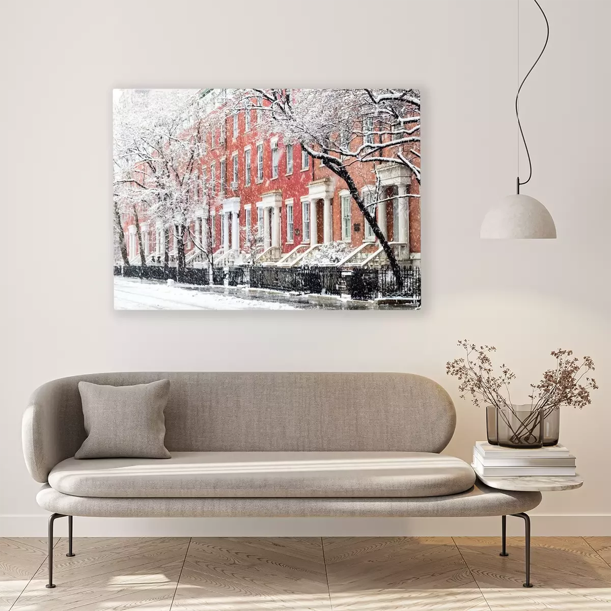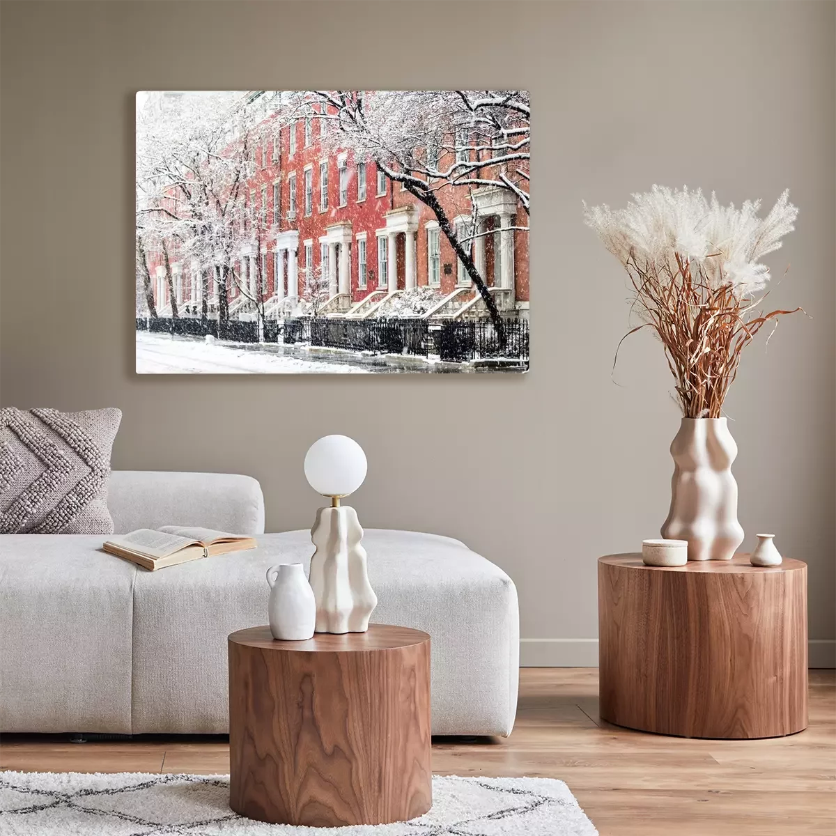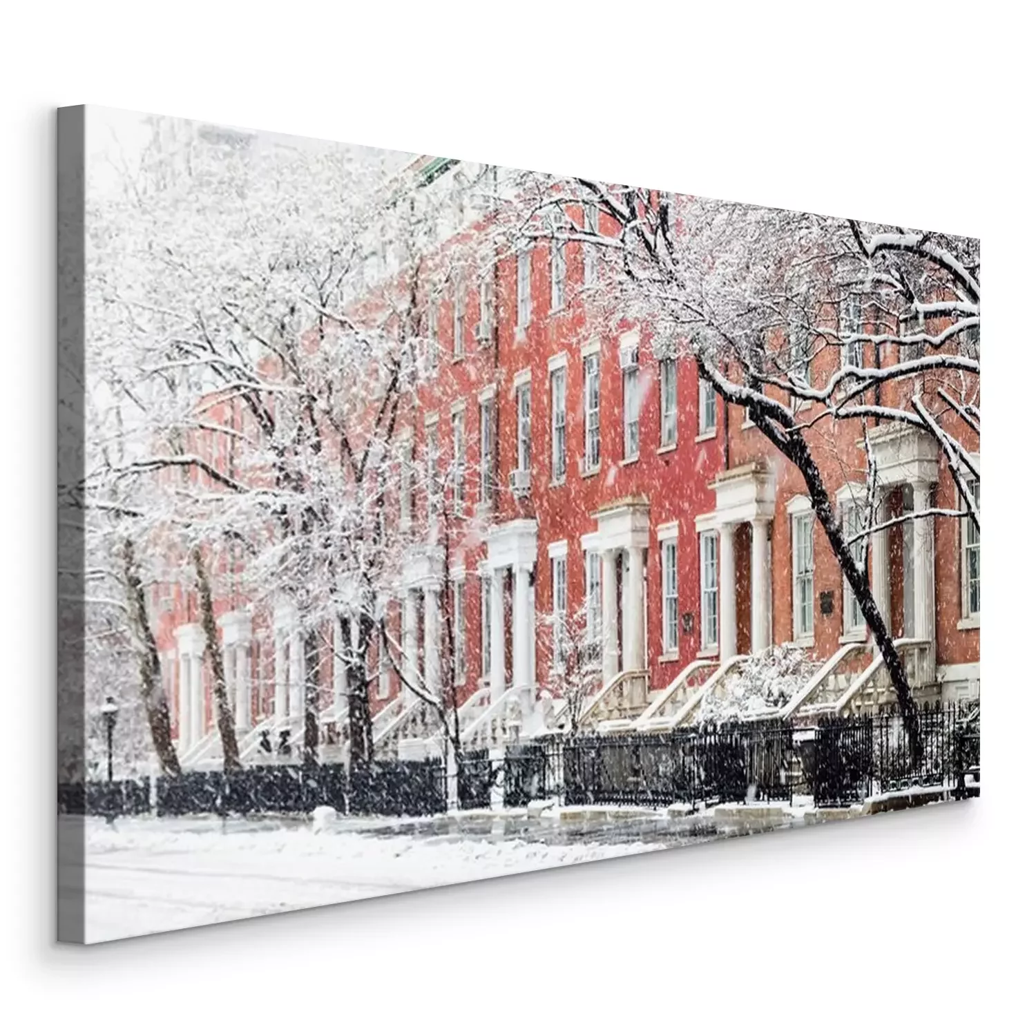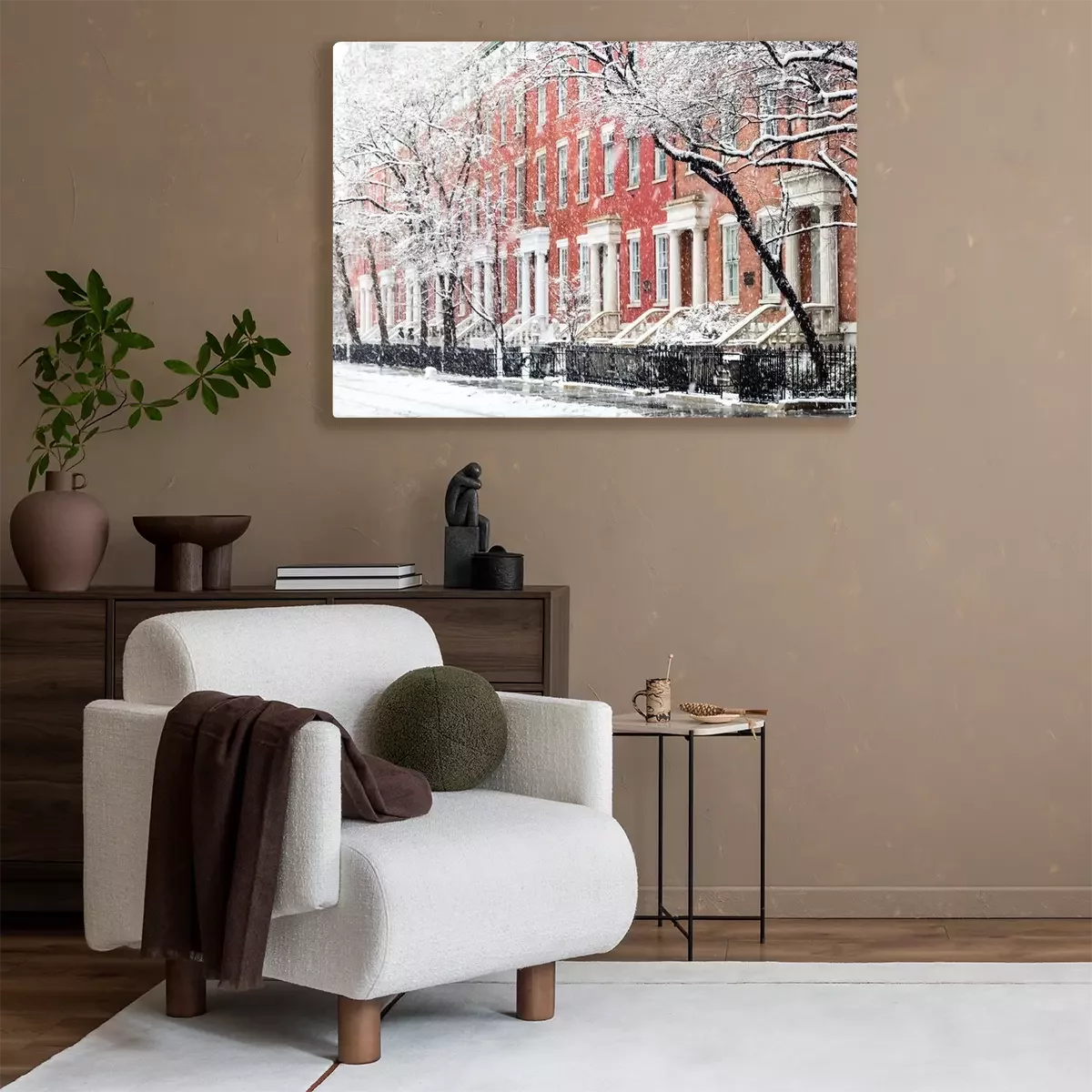 Tableau  Scène de rue enneigée hiver avec des bâtiments historiques le long de Washington Square Park à Manhattan, New York City