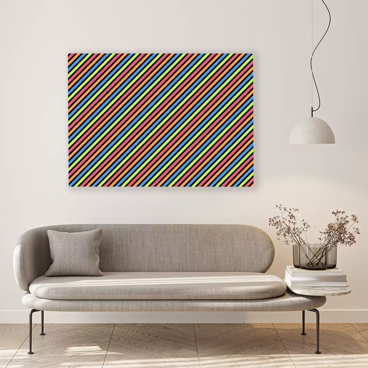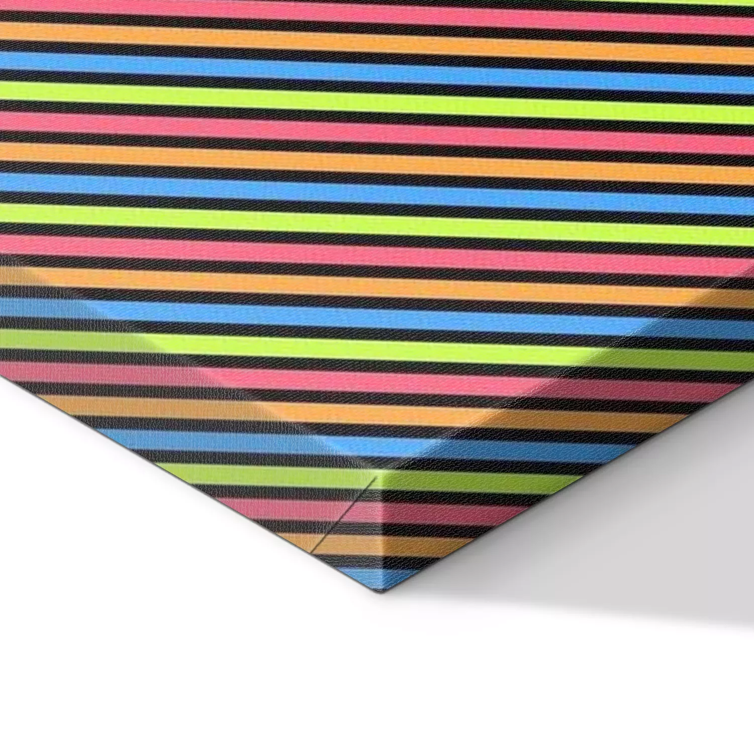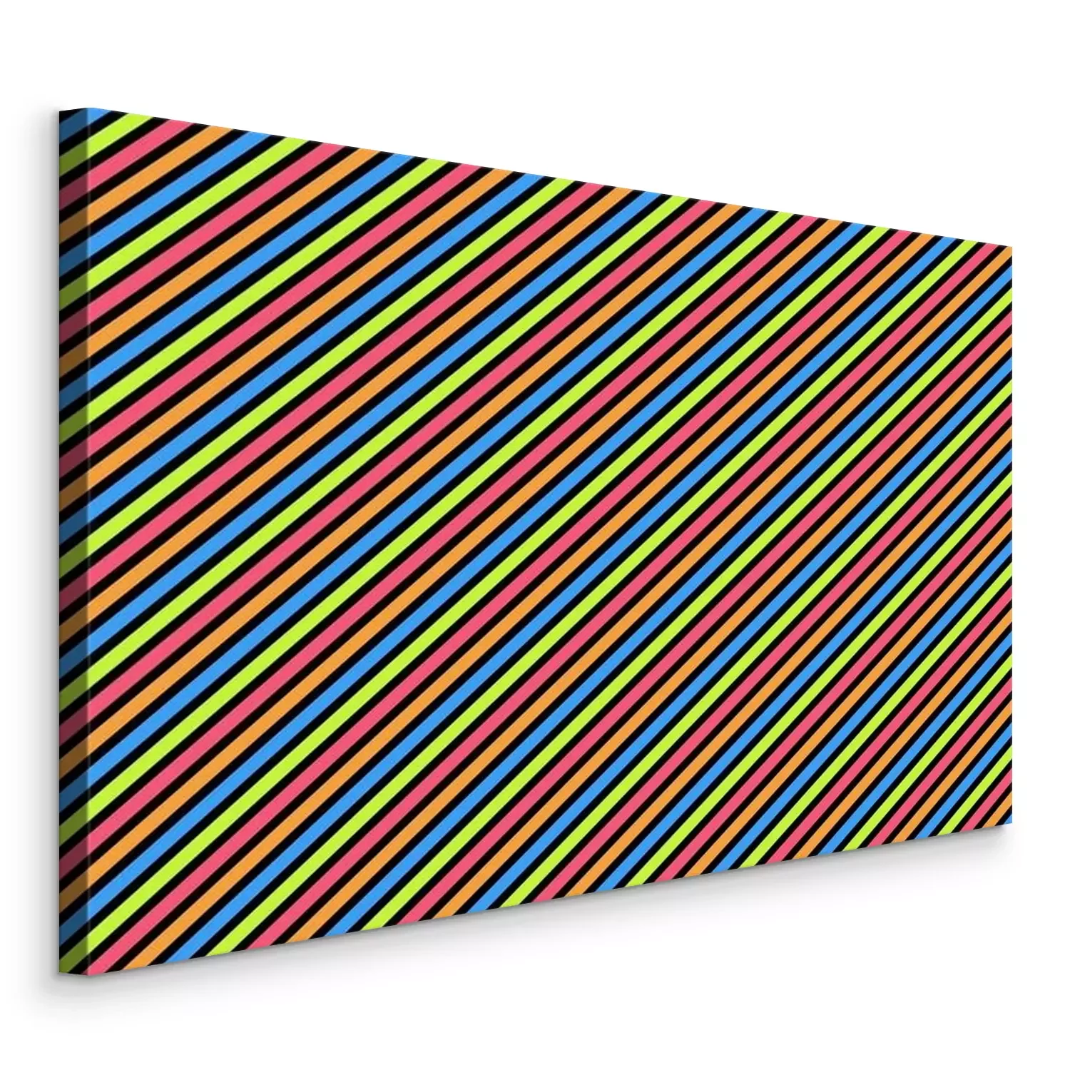 Tableau : Schräge Streifen dans violett, grün, rose und blau auf Schwarz