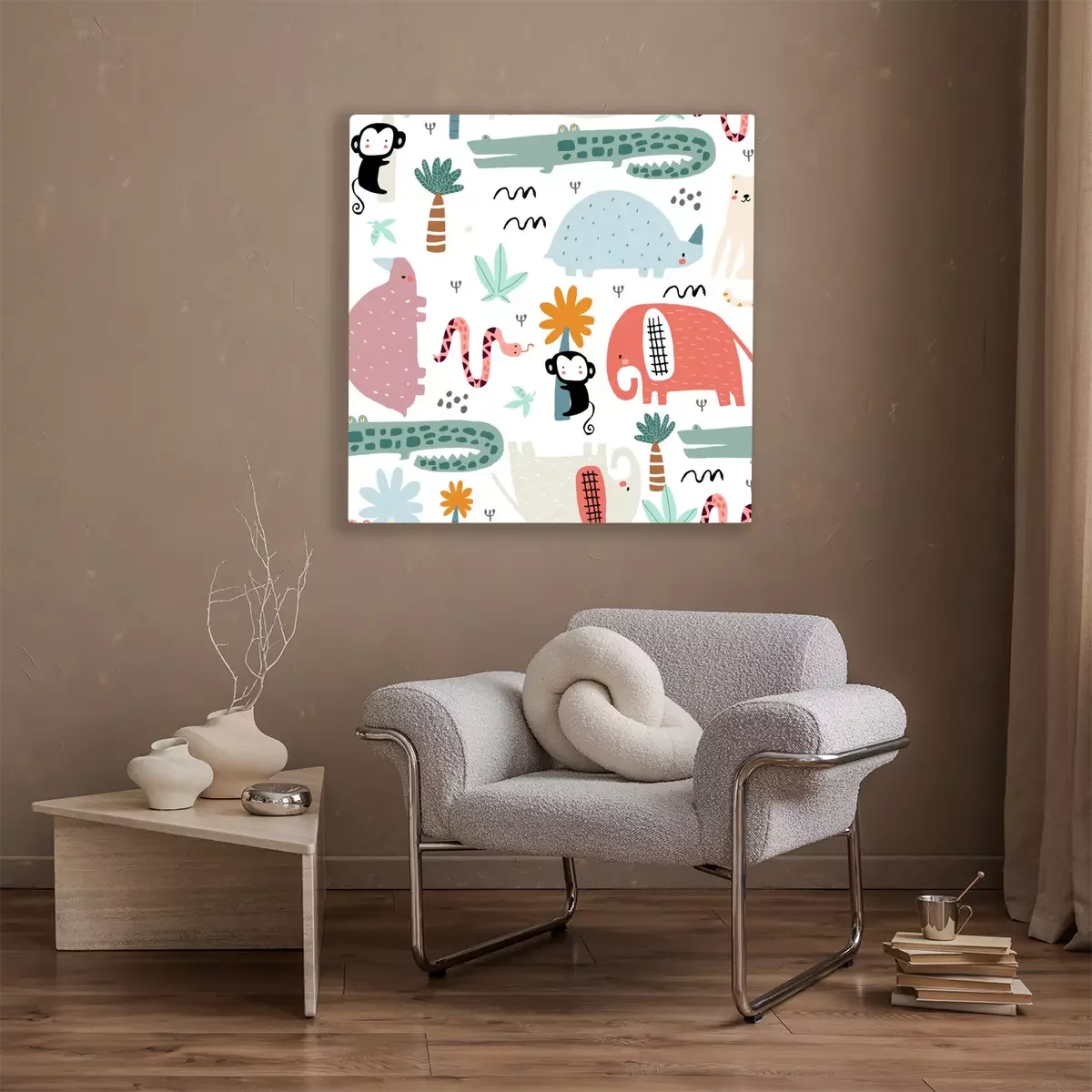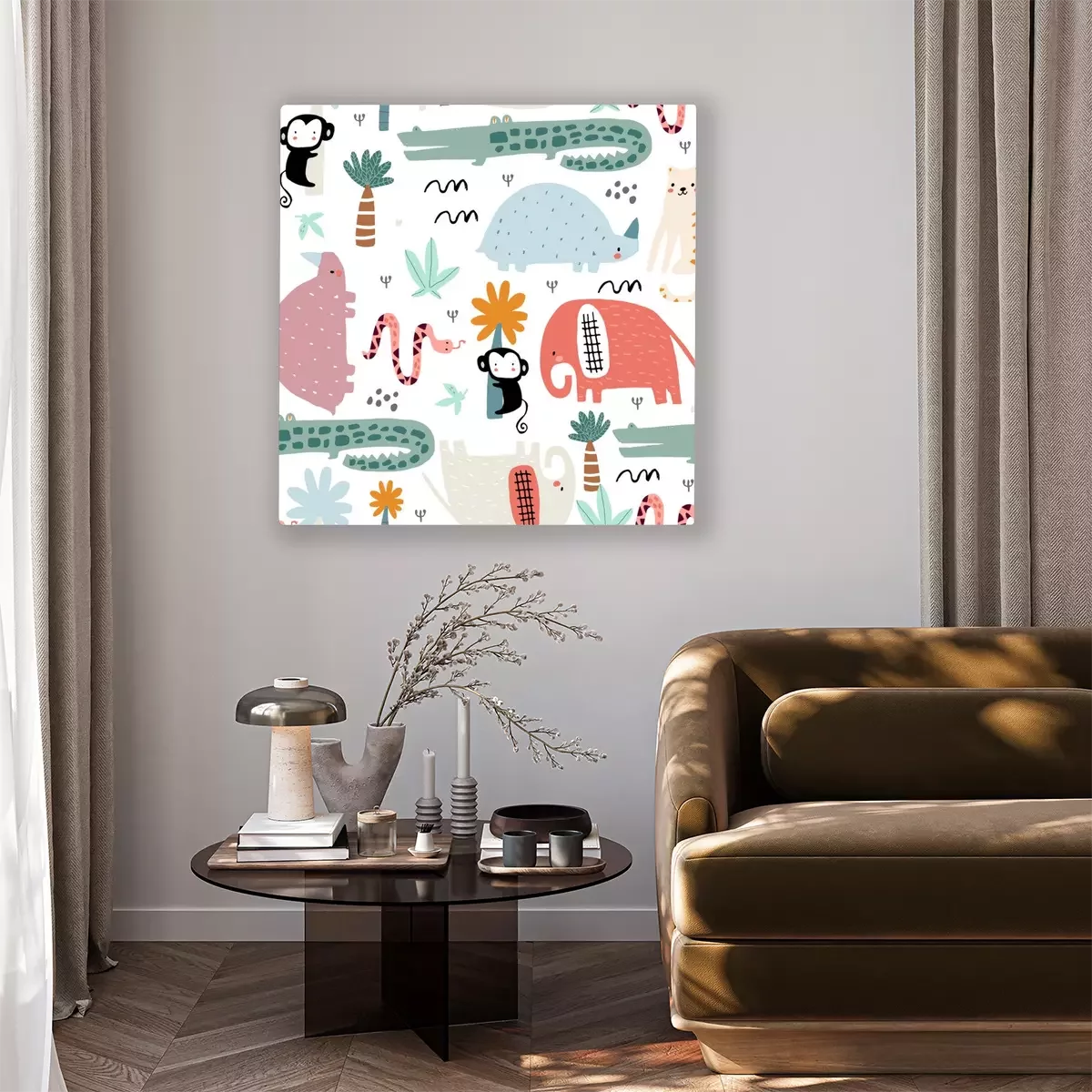 Tableau  Seamless childish pattern with african animals. Creative scandinavian style kids texture for fabric, wrapping, textile, wallpaper, apparel. Vector illustration