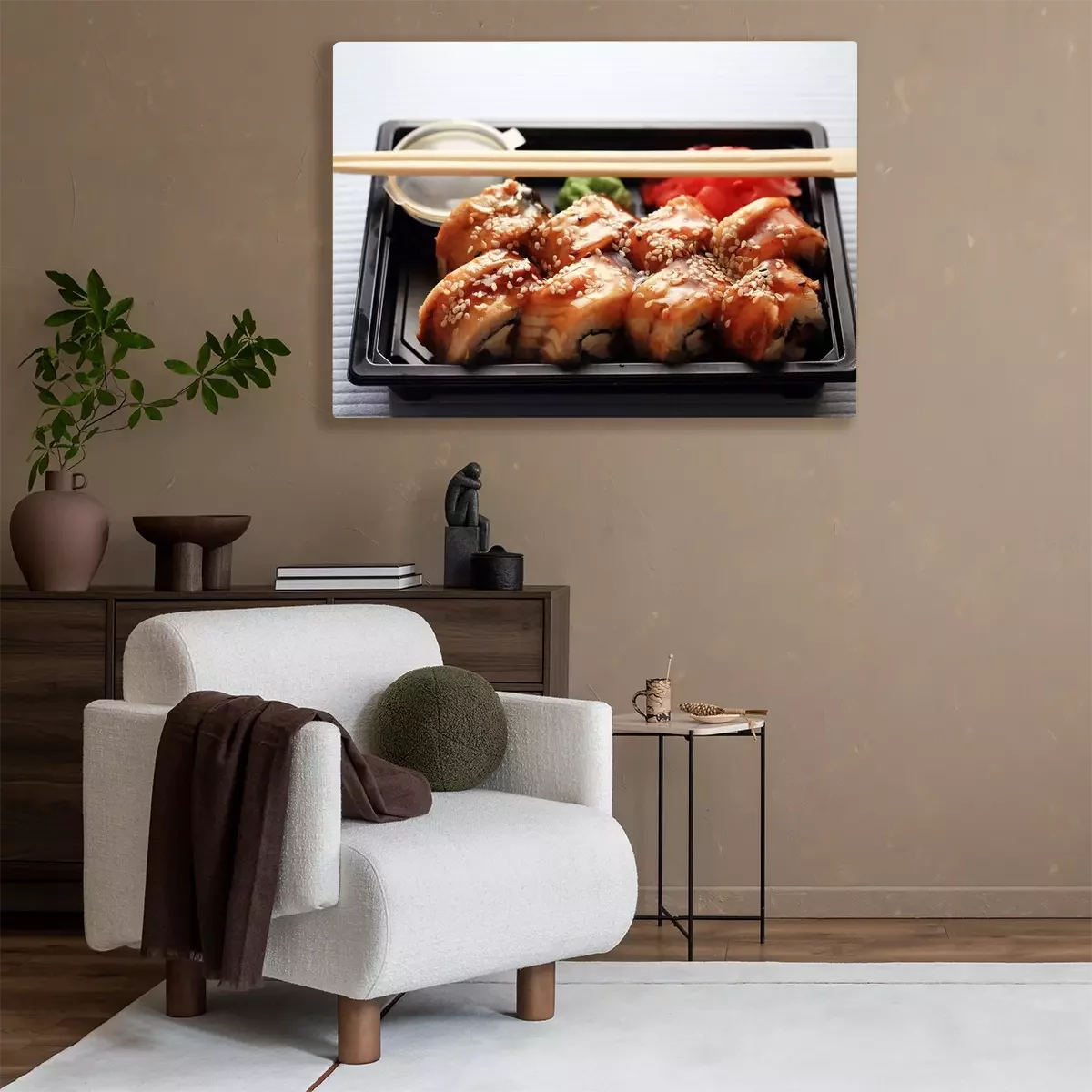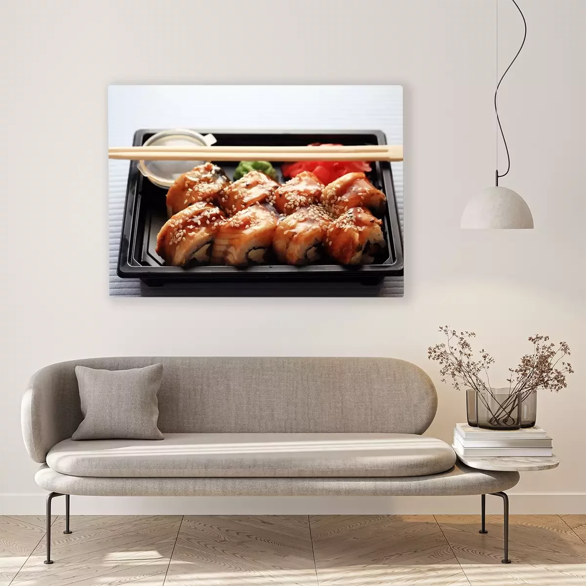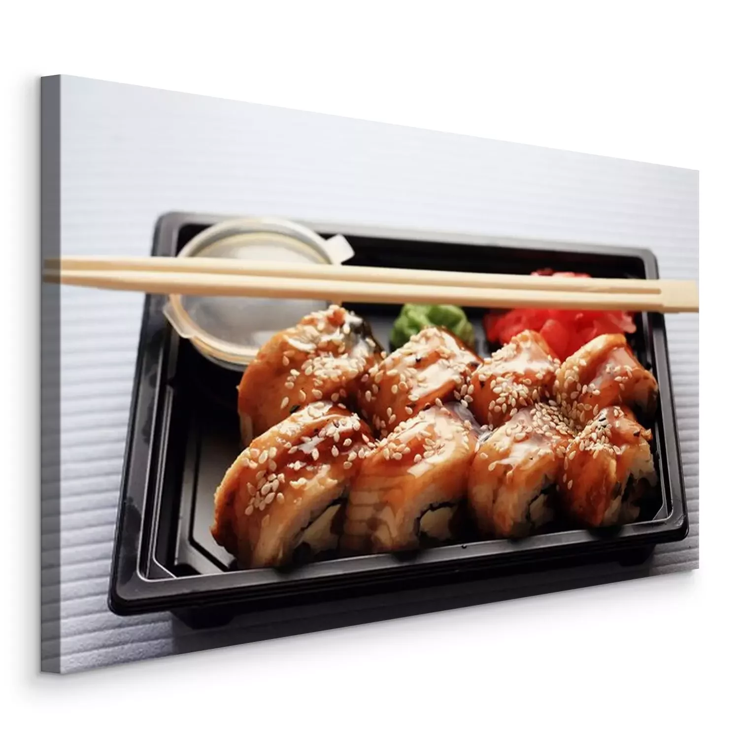 Tableau : service de livraison rouleaux alimentaires japonais dans une boîte en plastique