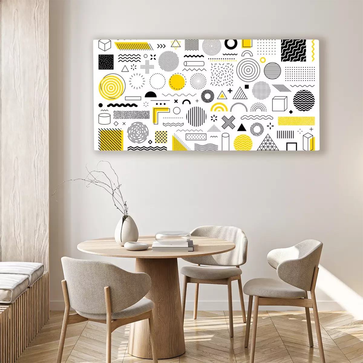 Tableau : Set of 100 geometric shapes. Memphis design, retro elements for web, vintage, advertisement, commercial banner, poster, leaflet, billboard, sale. Collection trendy halftone vector geometric shapes.