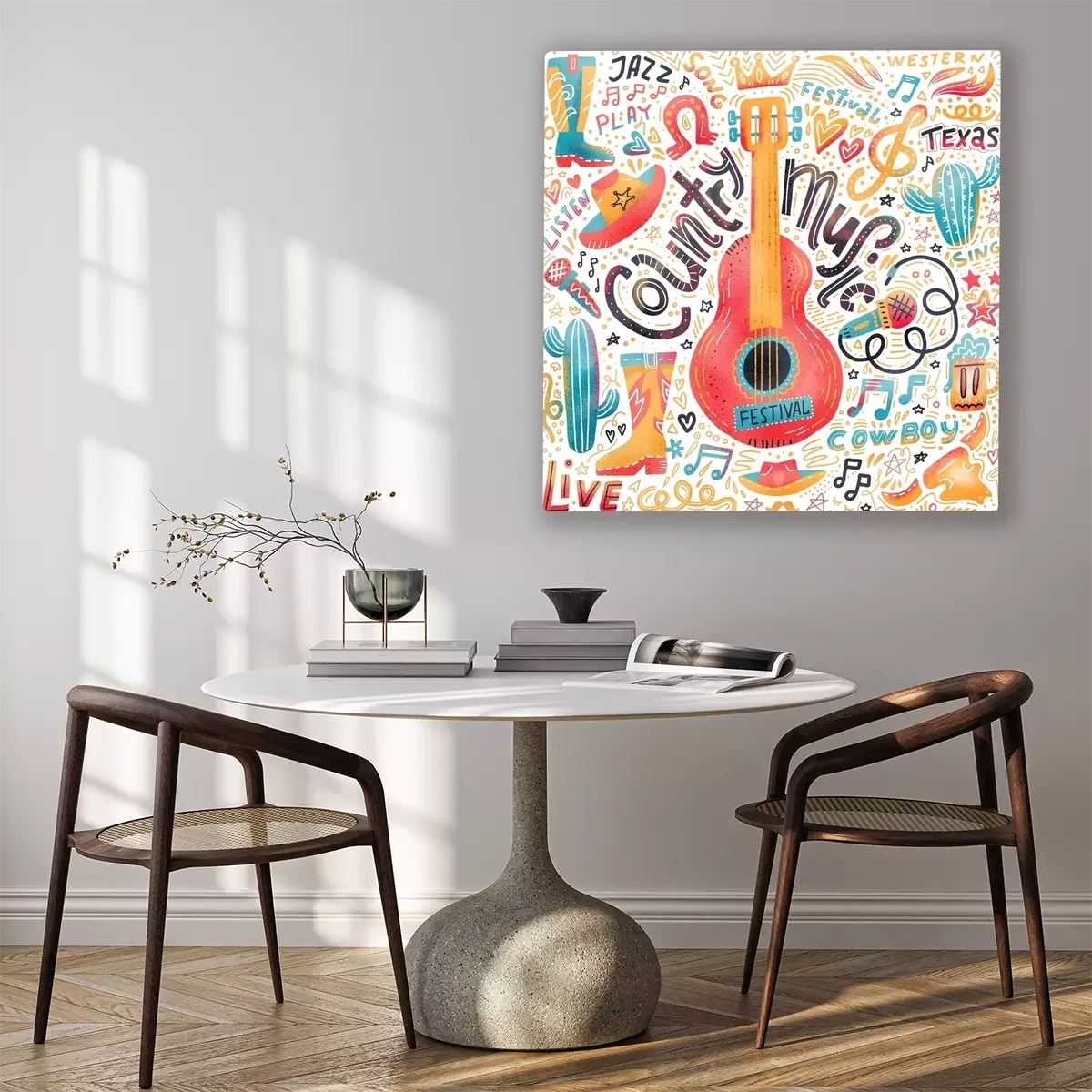 Tableau : Set of Country music elements for postcards or festival banners. hand drawn illustration in flat doodle style. Guitar with written lettering.