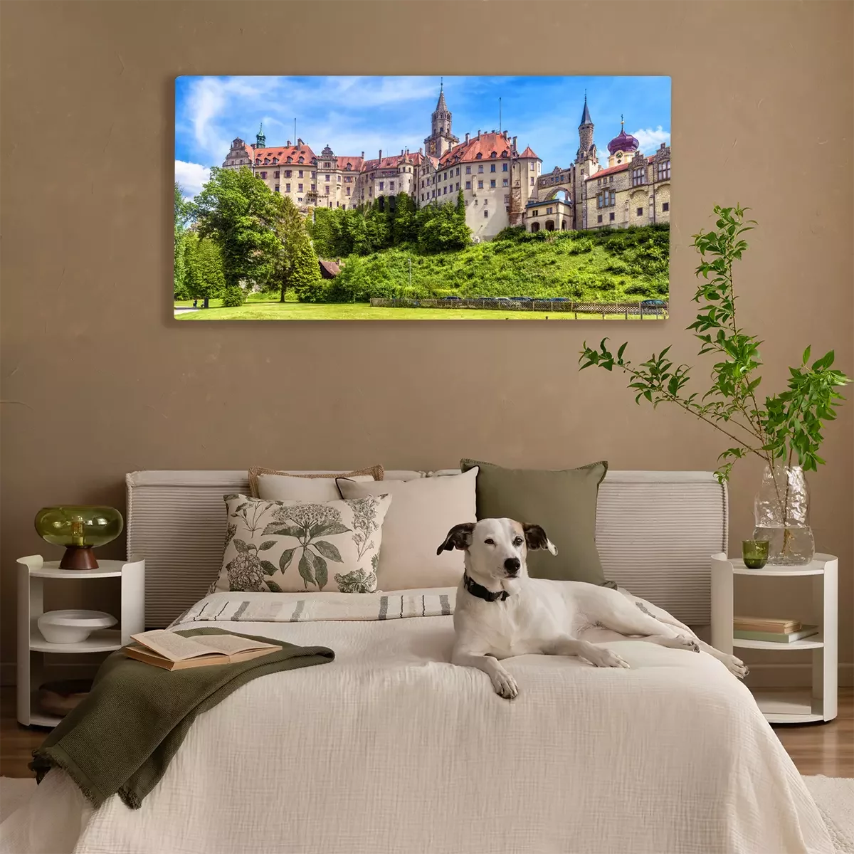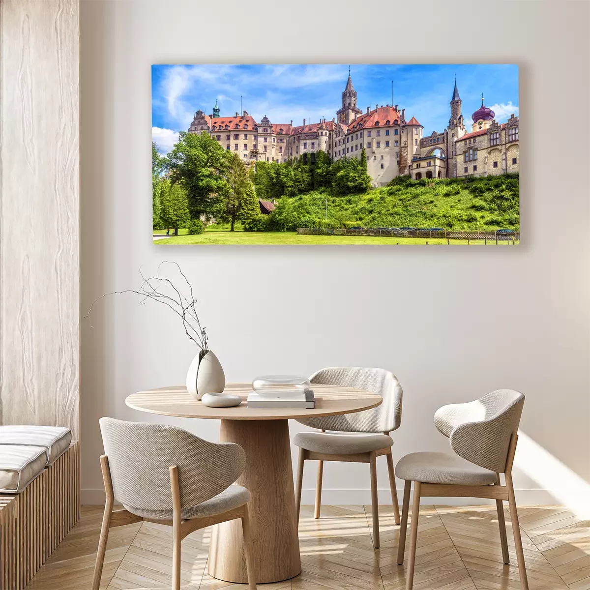 Tableau  Sigmaringen Castle in summer, Germany. This famous Gothic castle is a landmark of Baden-Wurttemberg. Panorama of old German castle on a hill. Scenic view of beautiful medieval palace on sunny day.