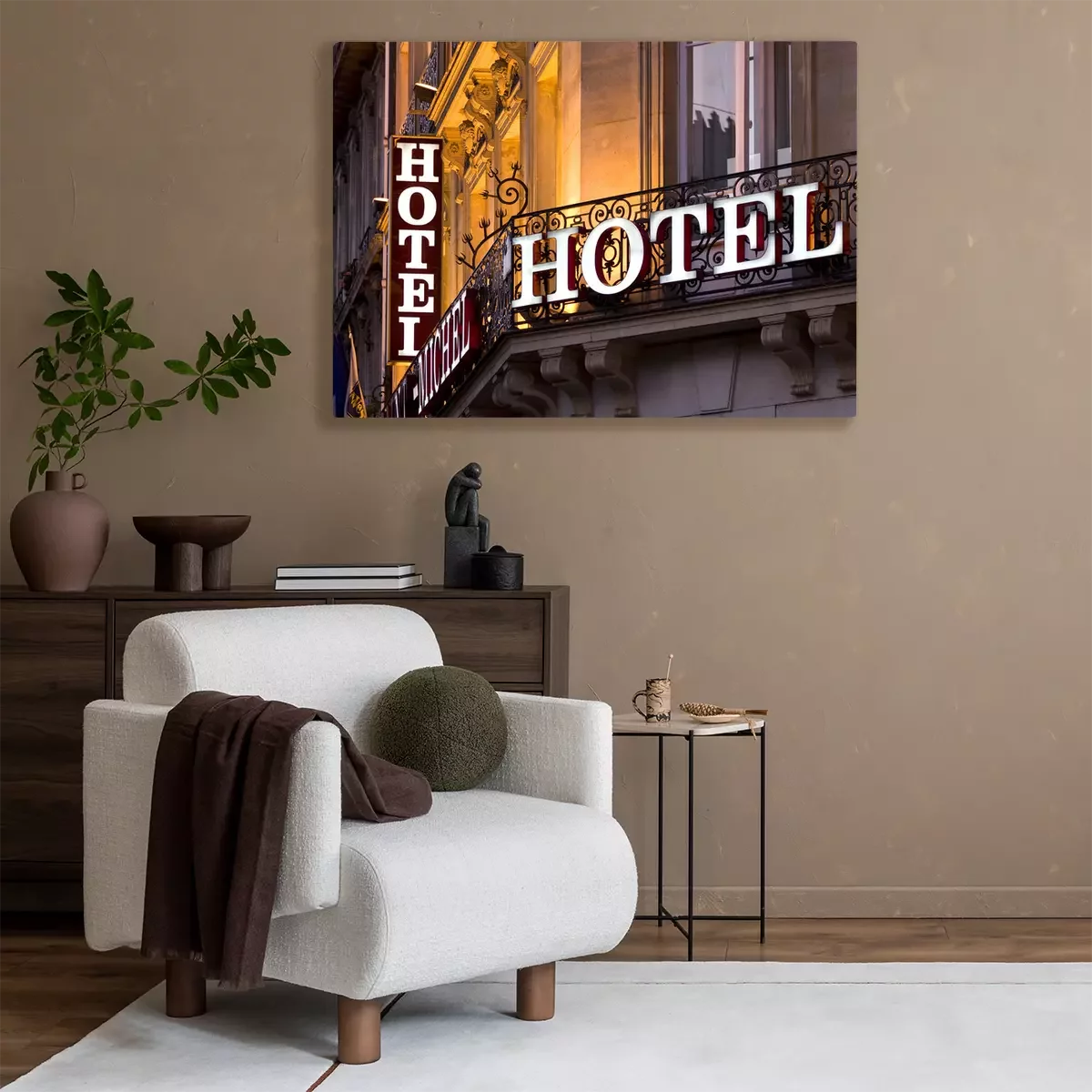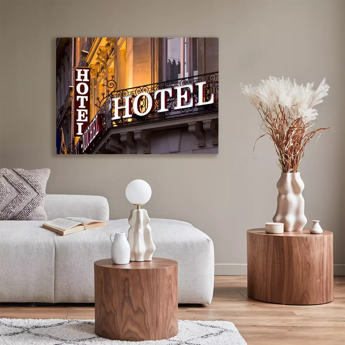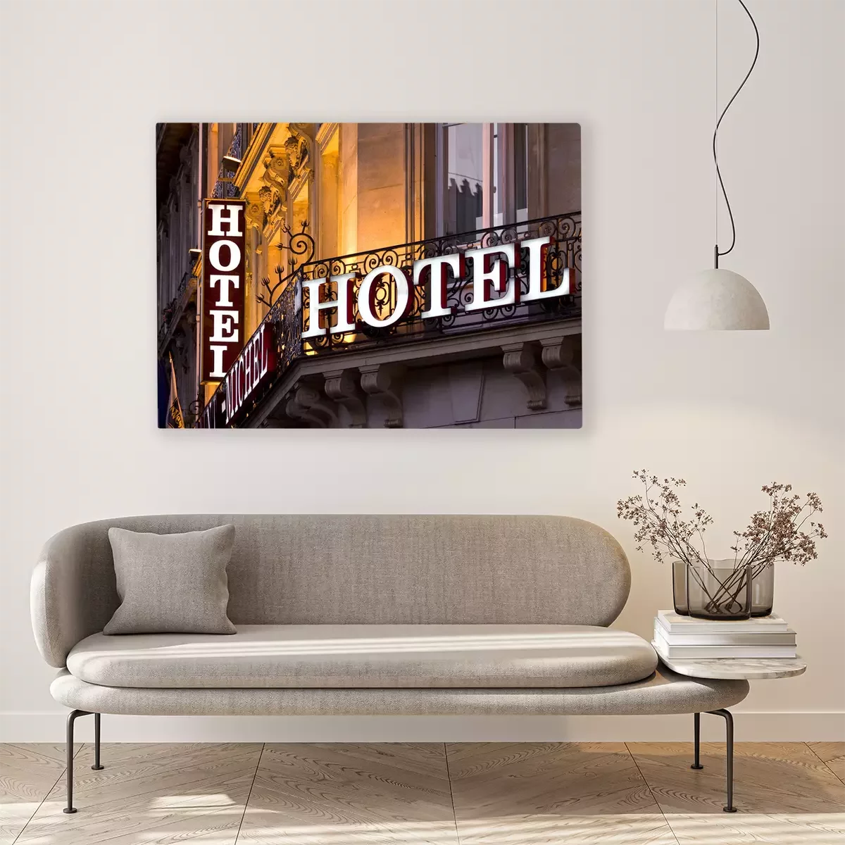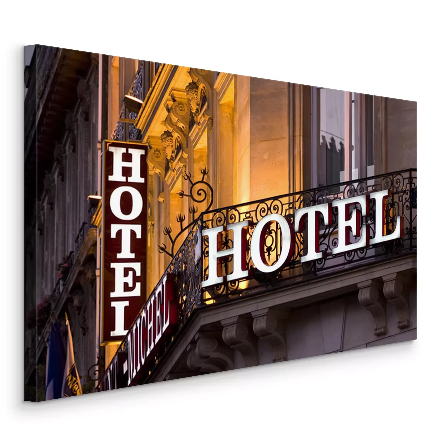 Tableau  Signe de l'hôtel parisien illuminé prise au crépuscule