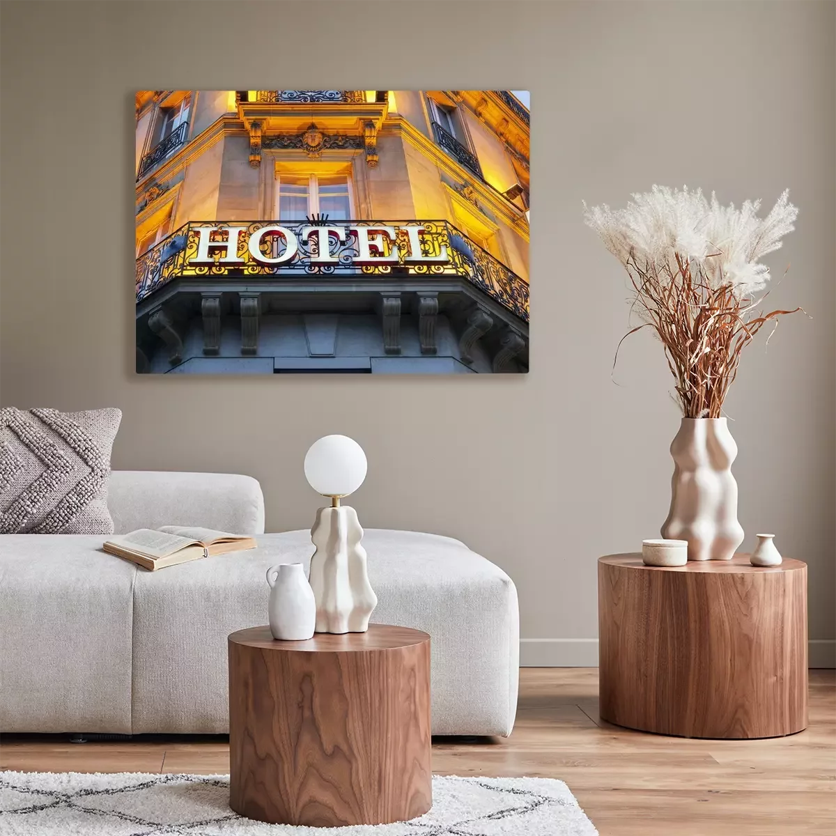 Signe de l'hôtel parisien illuminé prise au crépuscule