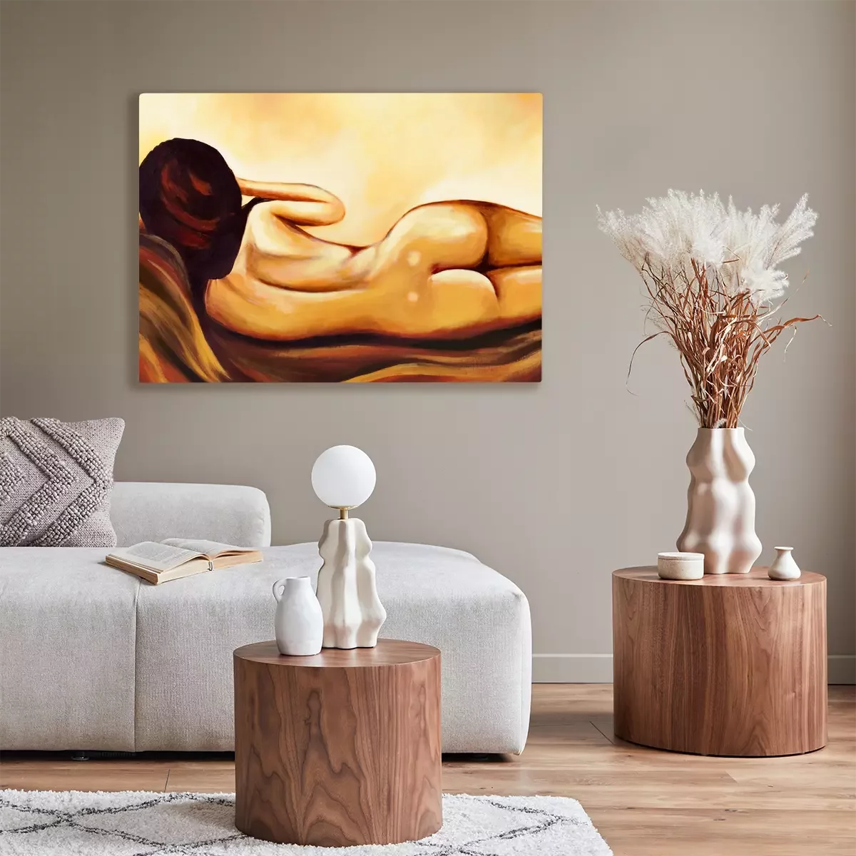 Silhouette d'une femme couchée sur le côté dans une palette de couleurs jaune et marron