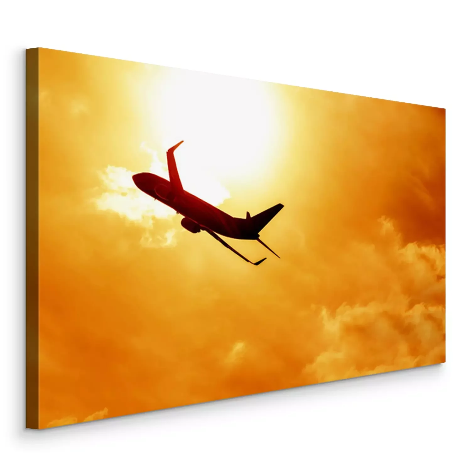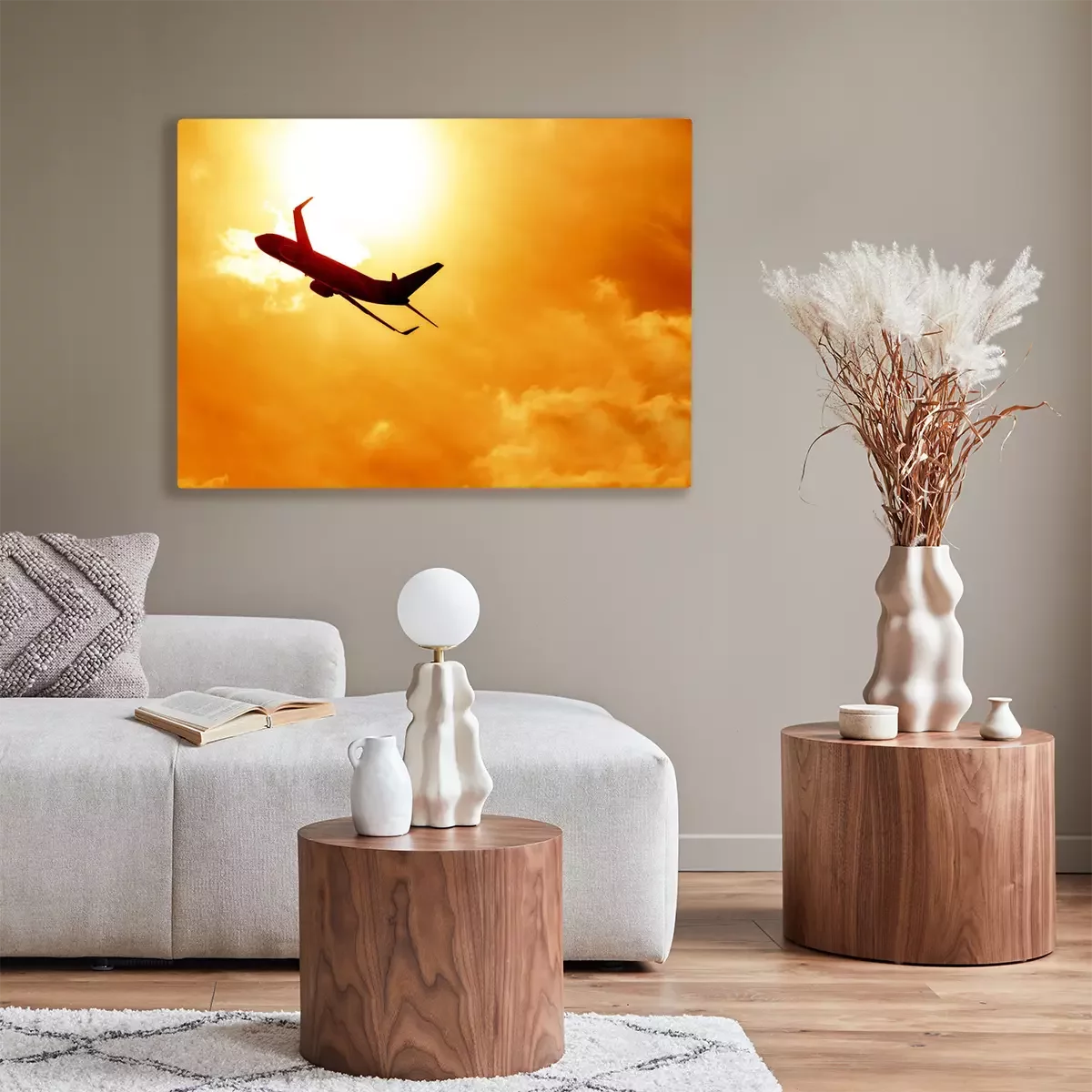 Tableau : Silhouette d'avion sur fond coucher de soleil