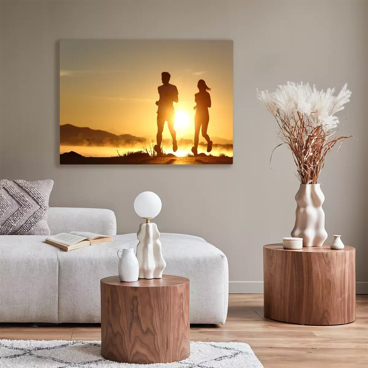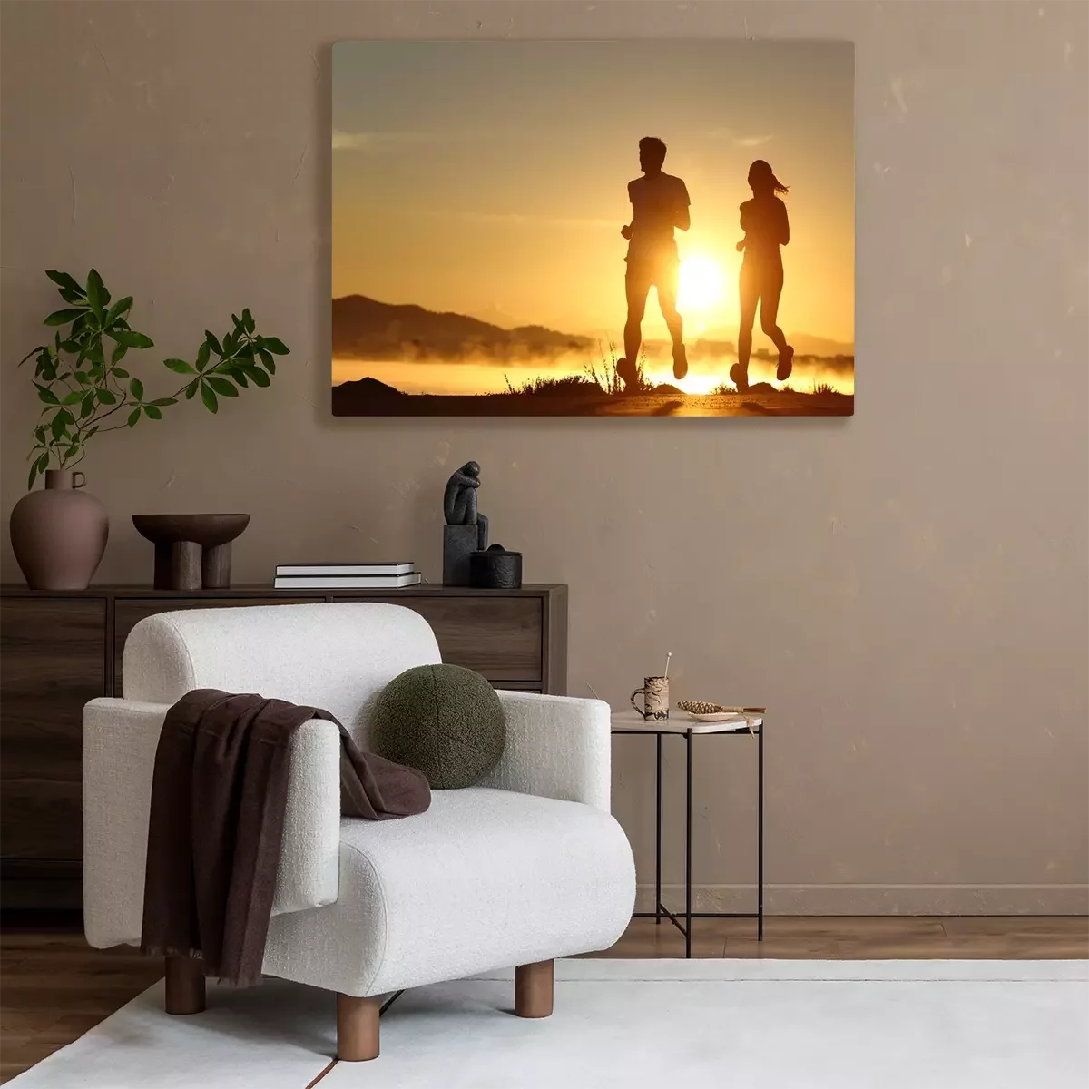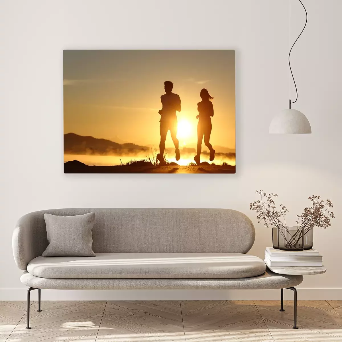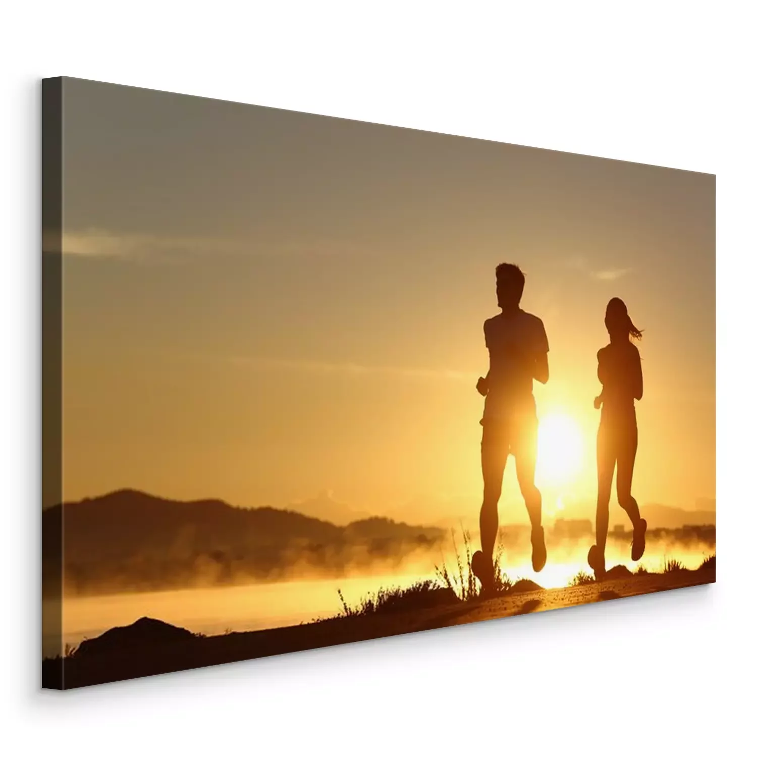 Tableau  Silhouette d'un couple en cours d'exécution au coucher du soleil
