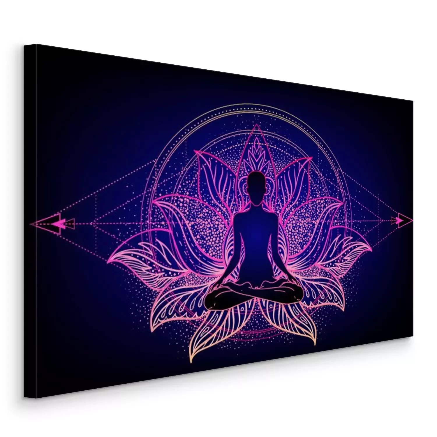 Tableau : Silhouette humaine en position du lotus et mandala en arrière-plan