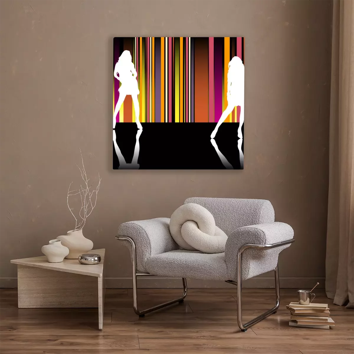 Tableau : Silhouettes de filles sexy en face de fond rayé