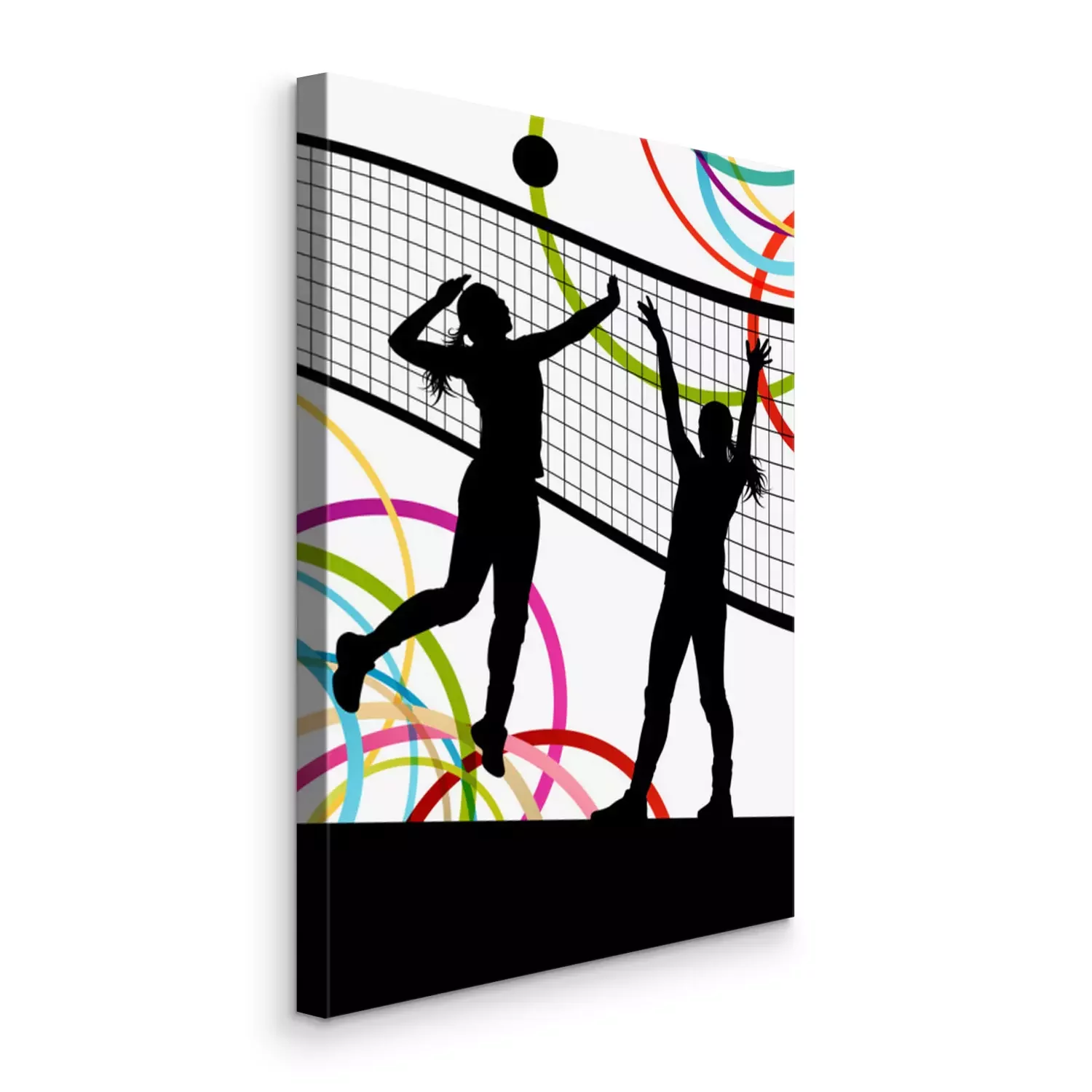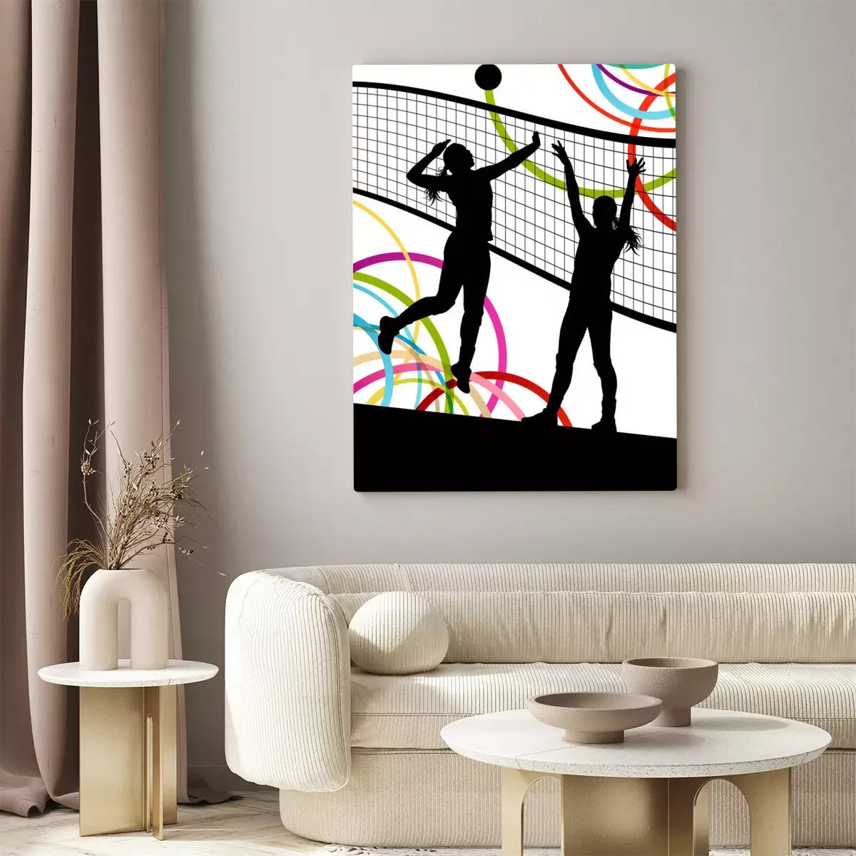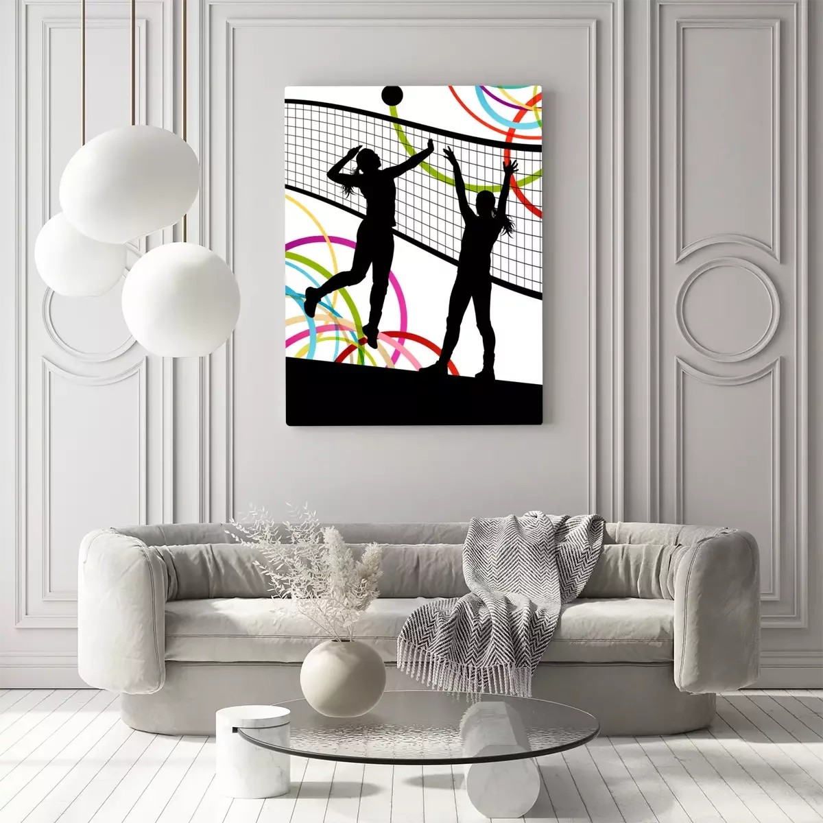 Tableau : Silhouettes de jeunes femmes actives joueur de volley-ball de sport dans abstra
