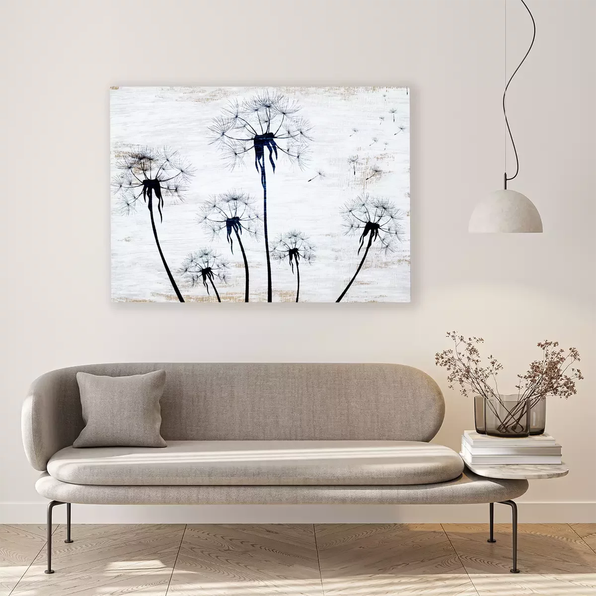 Silhouettes minimalistes de pissenlits sur une texture blanche
