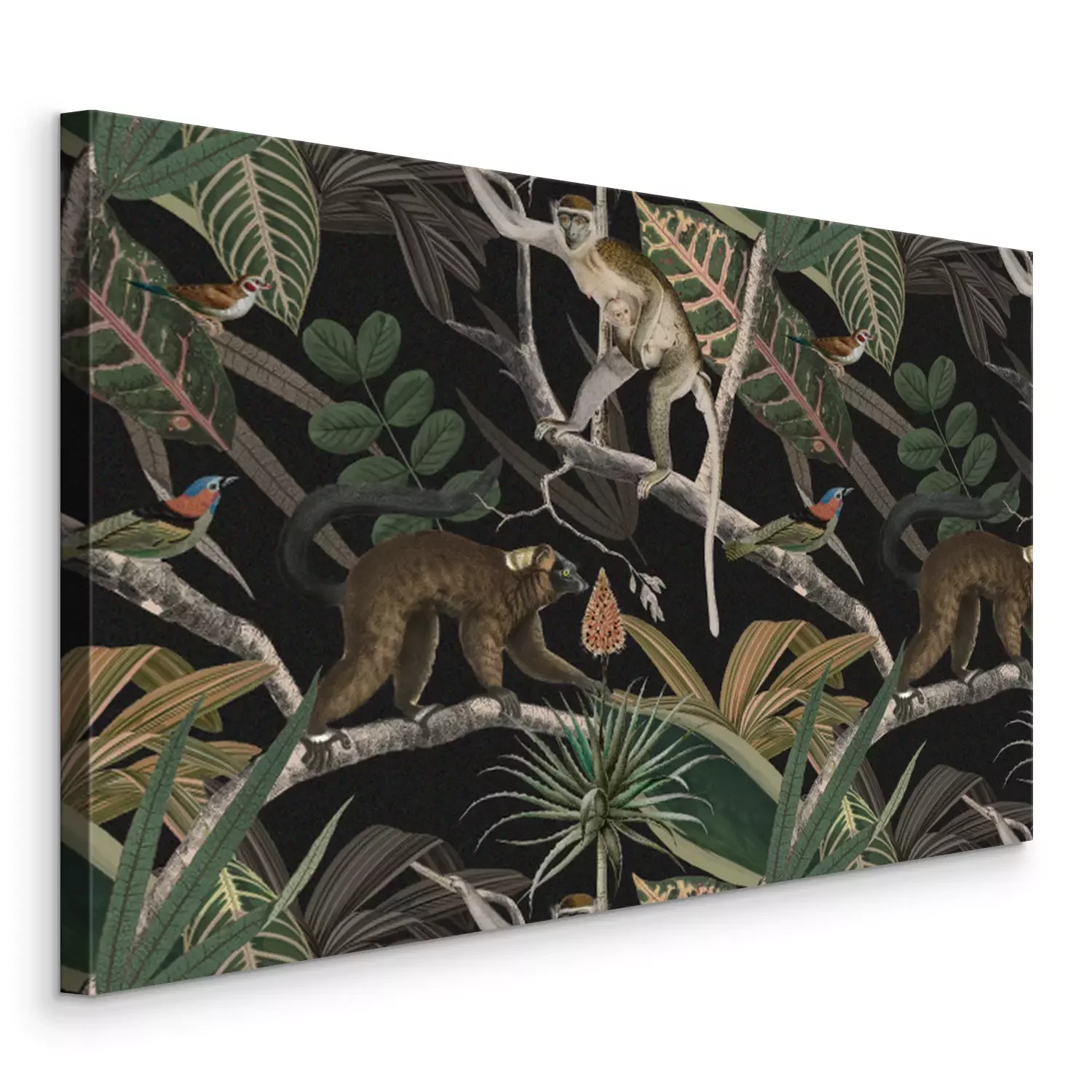 Tableau  Singes sauvages au milieu de plantes dans la jungle