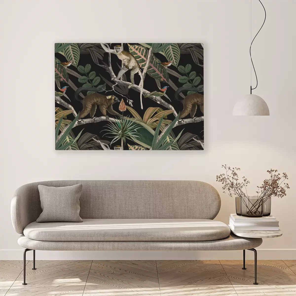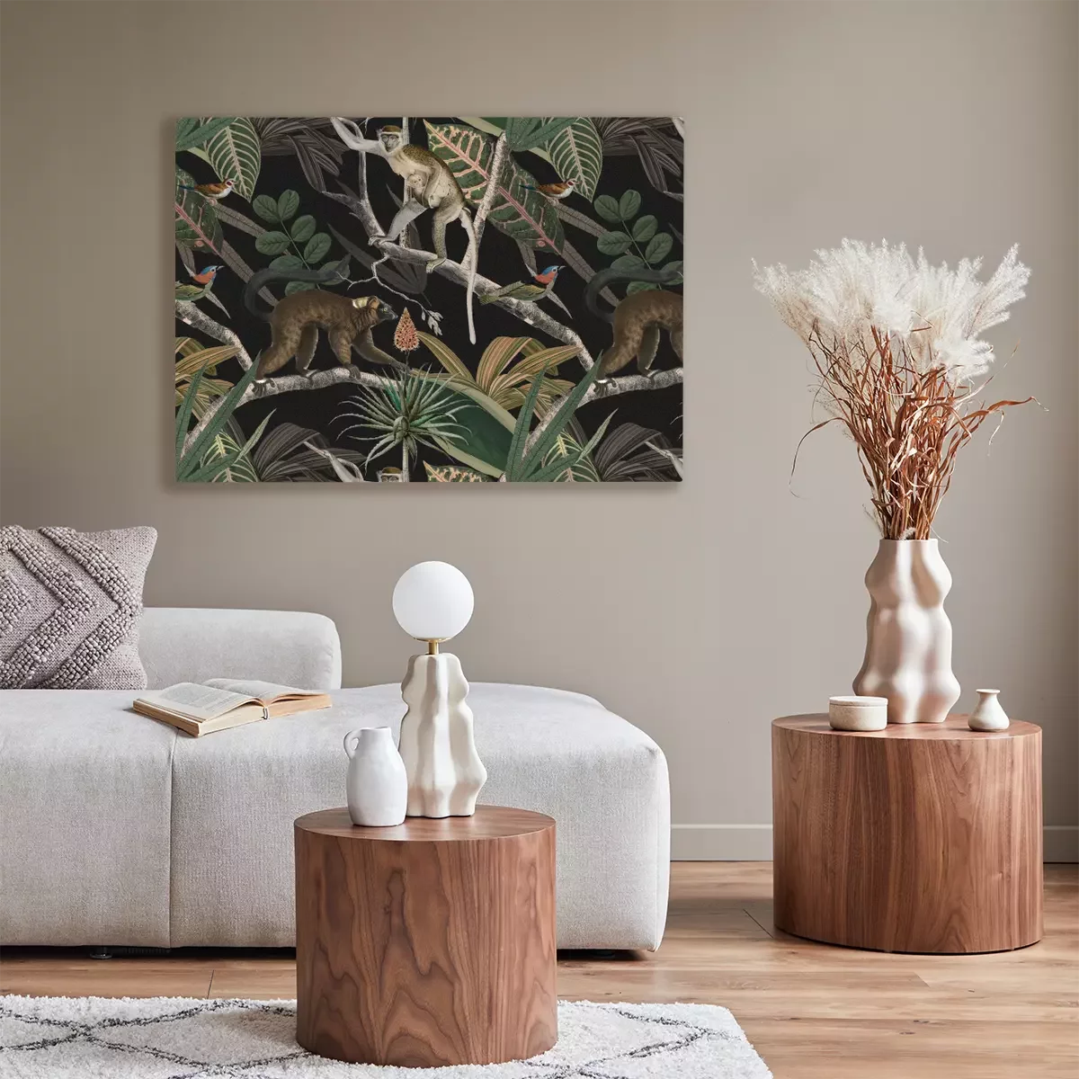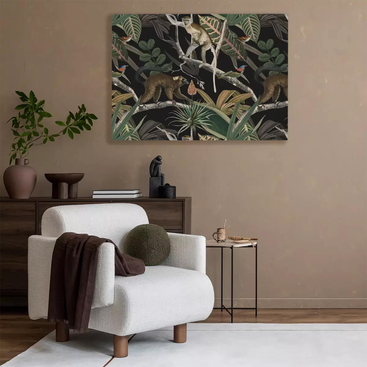 Tableau : Singes sauvages au milieu de plantes dans la jungle