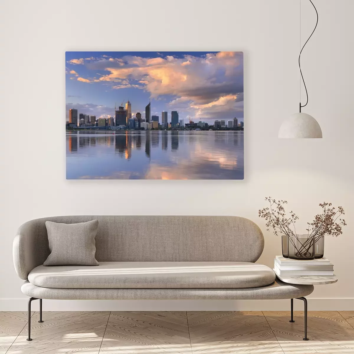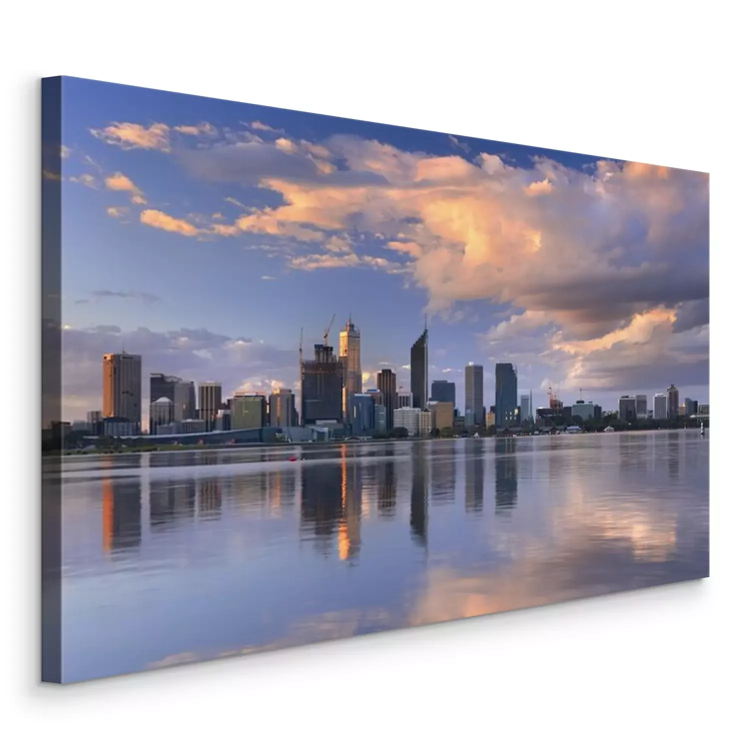 Tableau  Skyline de Perth, en Australie à travers la rivière Swan au coucher du soleil