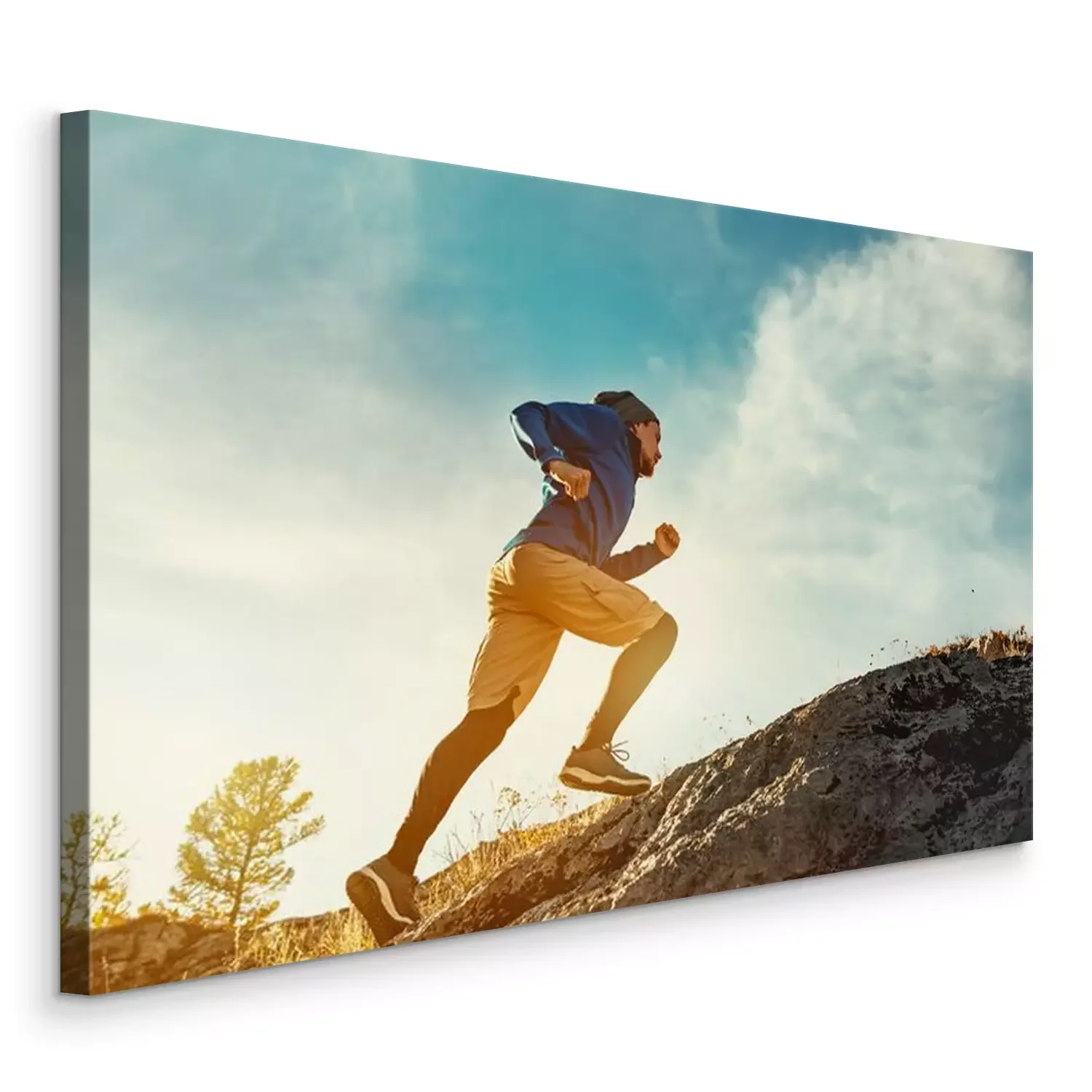 Tableau  Skyrunner skyrunning crosscountry concept with young athlete on big rock