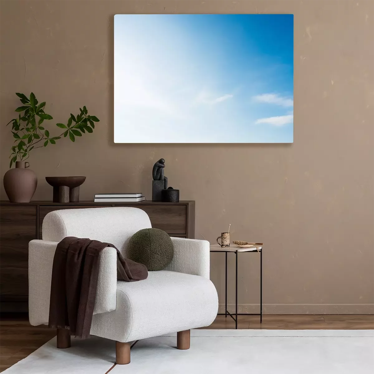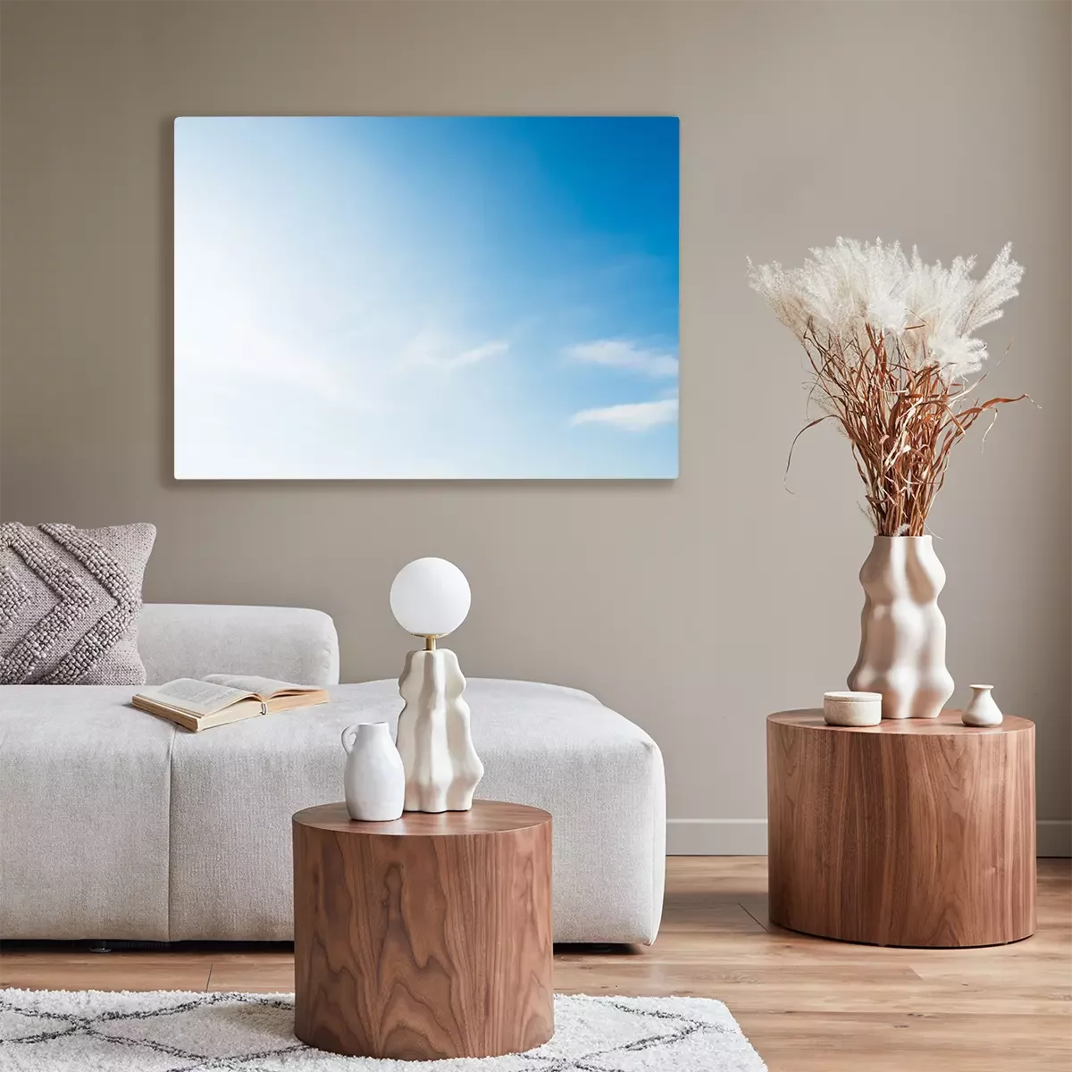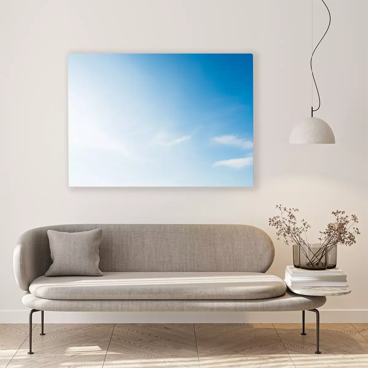 Tableau  Soft blue sky with small white clouds and bright sun light