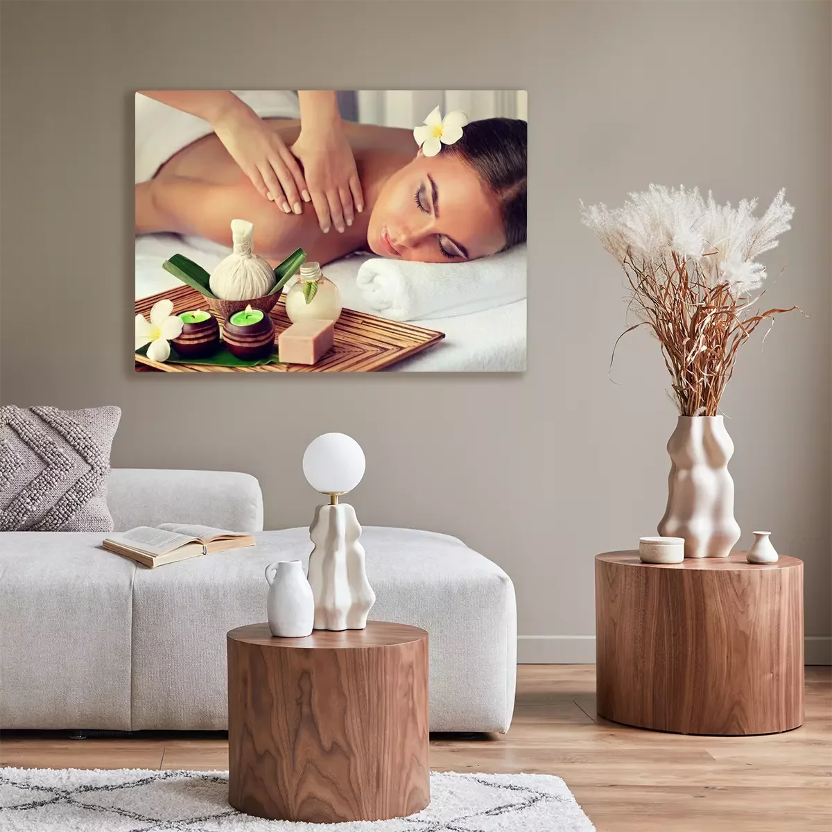 Tableau  Soin du corps. Spa massothérapie. Femme, avoir, massage, spa, salon