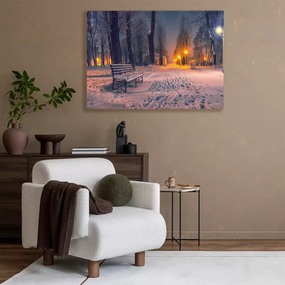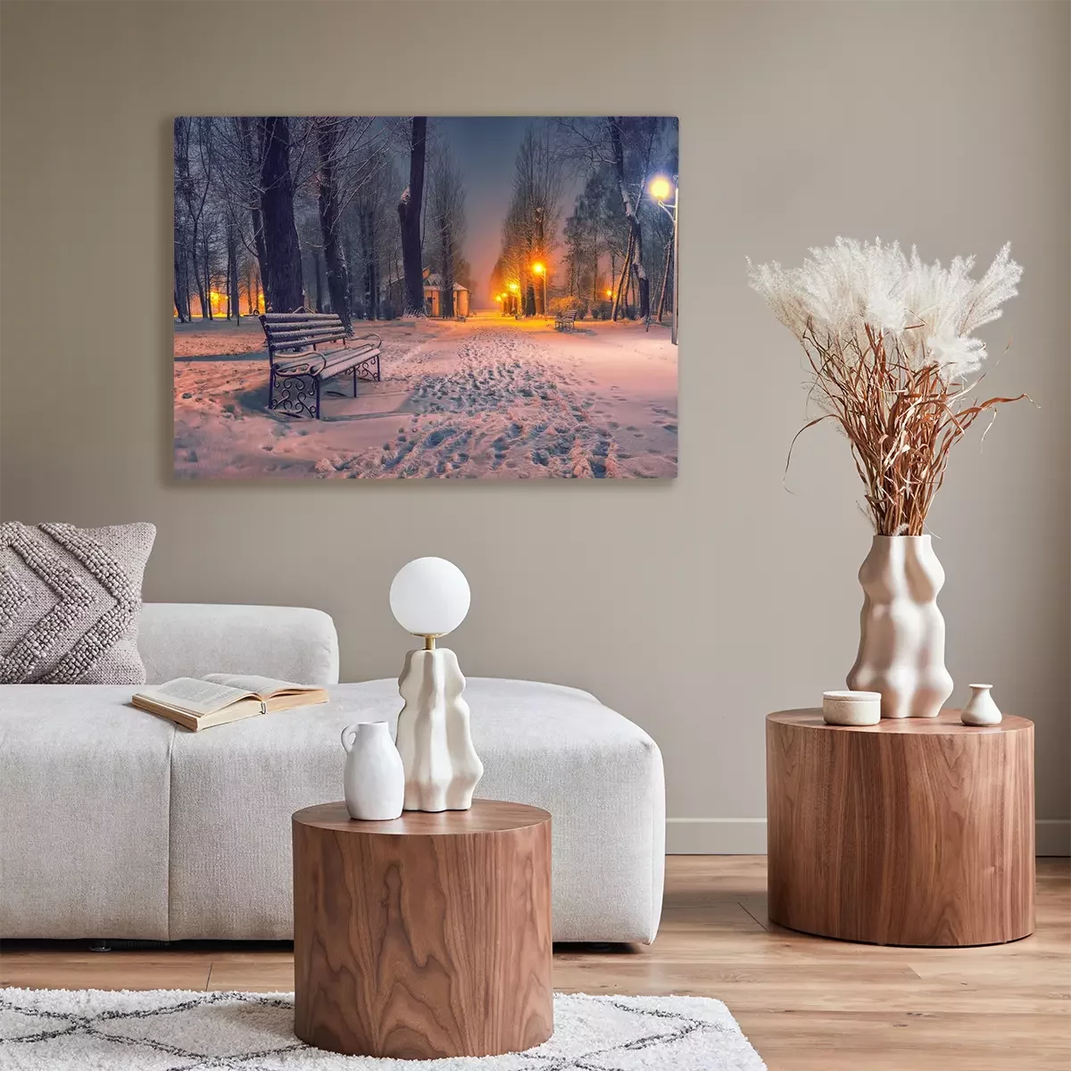 Tableau : Soirée d'hiver dans un parc central.