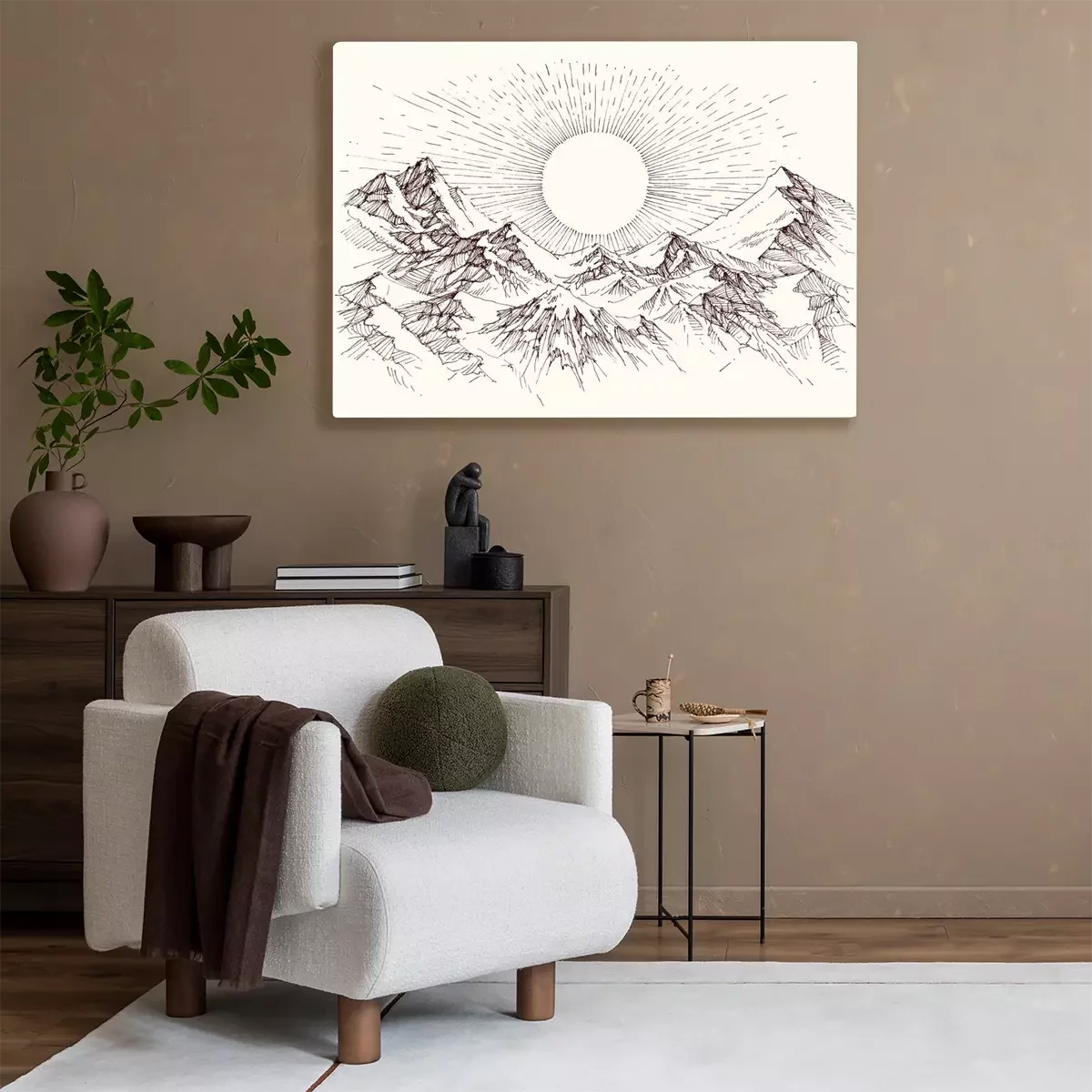Tableau : Soleil, ascension, montagnes, panorama