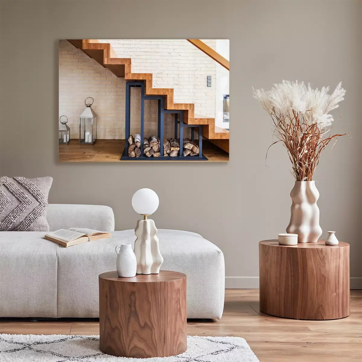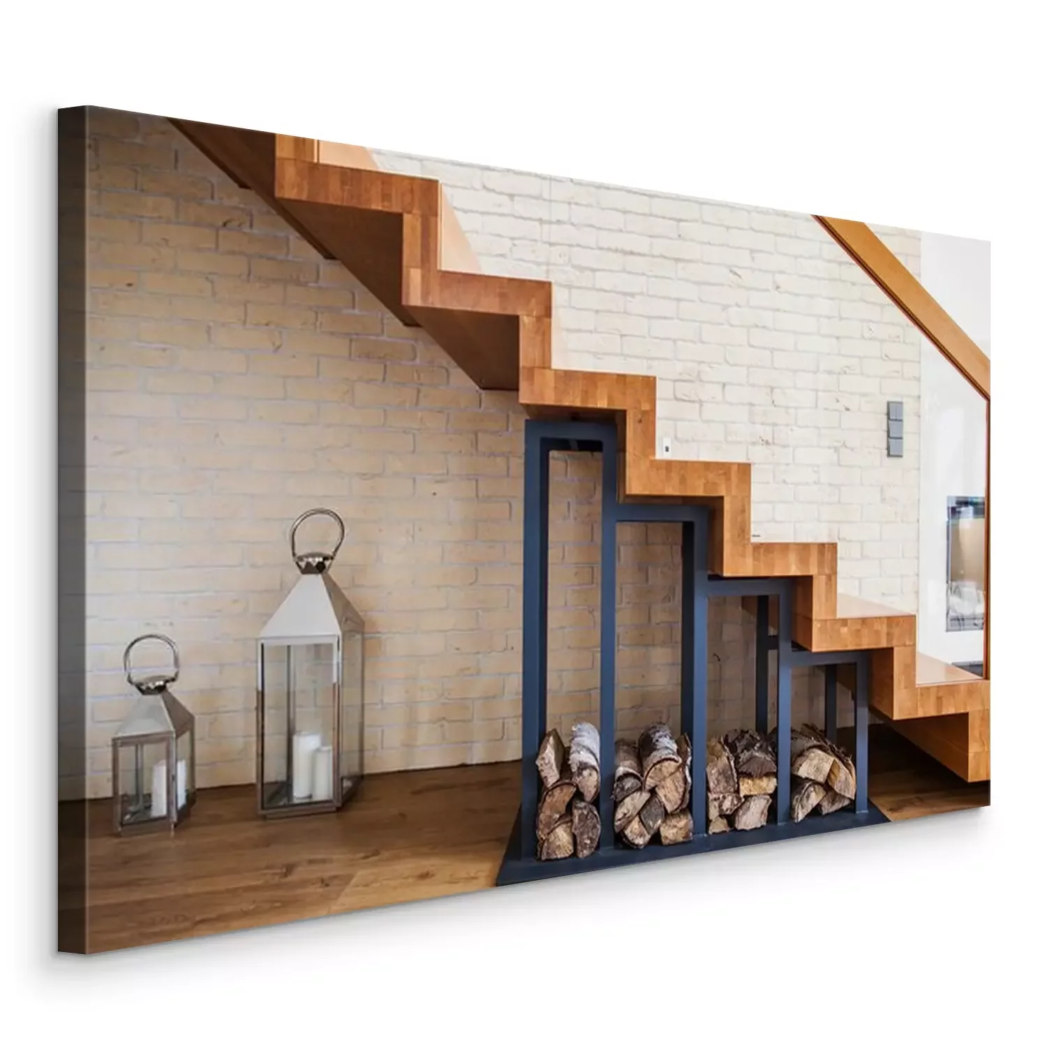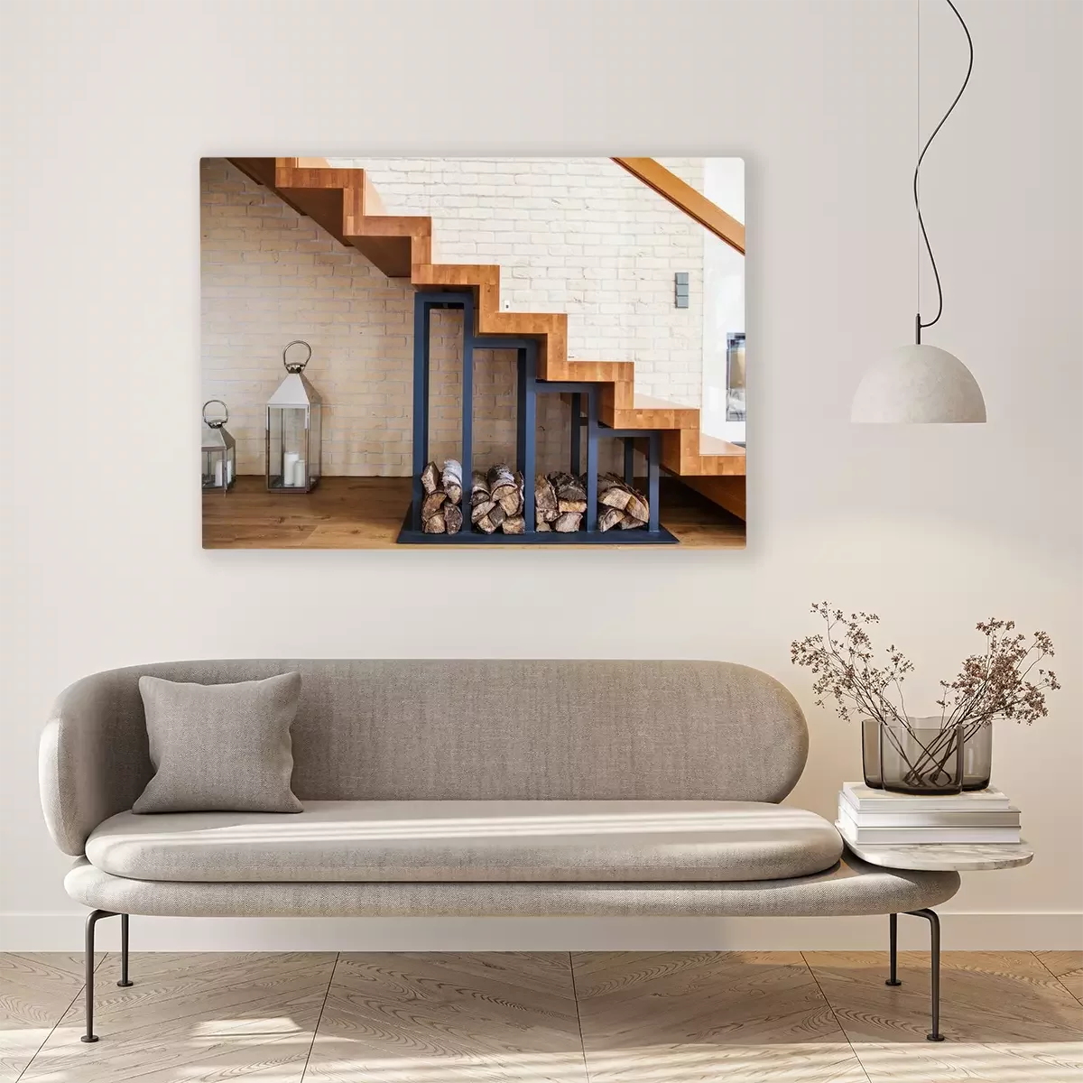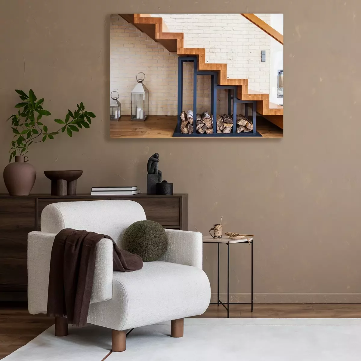 Tableau  Solution moderne à la pile de stockage de bois sous les escaliers à la maison