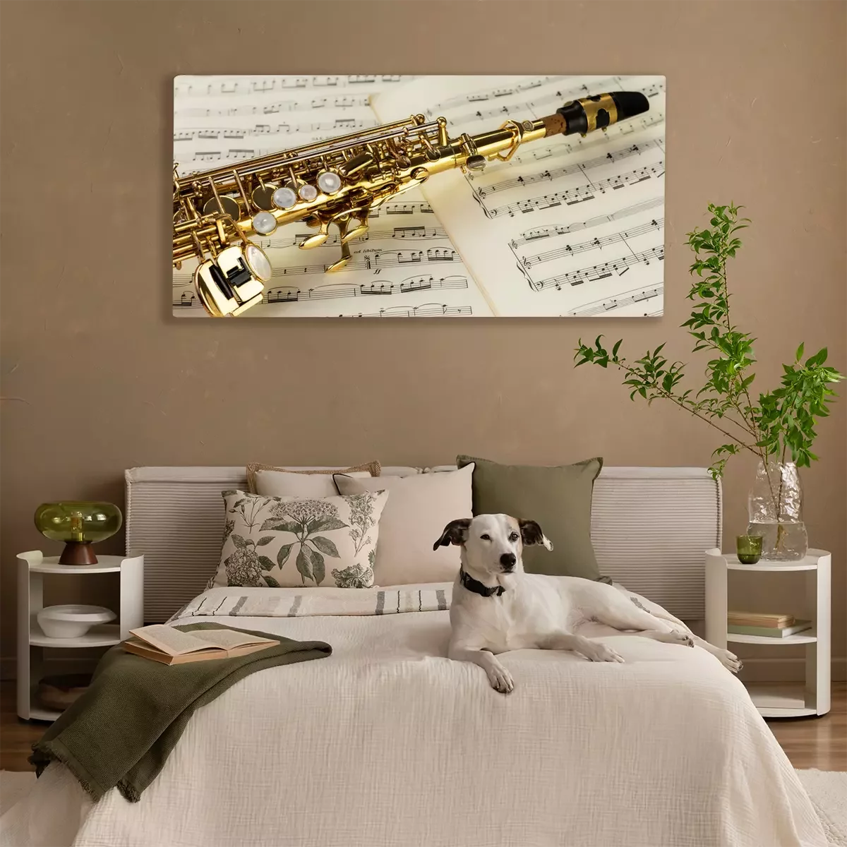 Tableau : Soprano Saxophone in close-up on musical notes