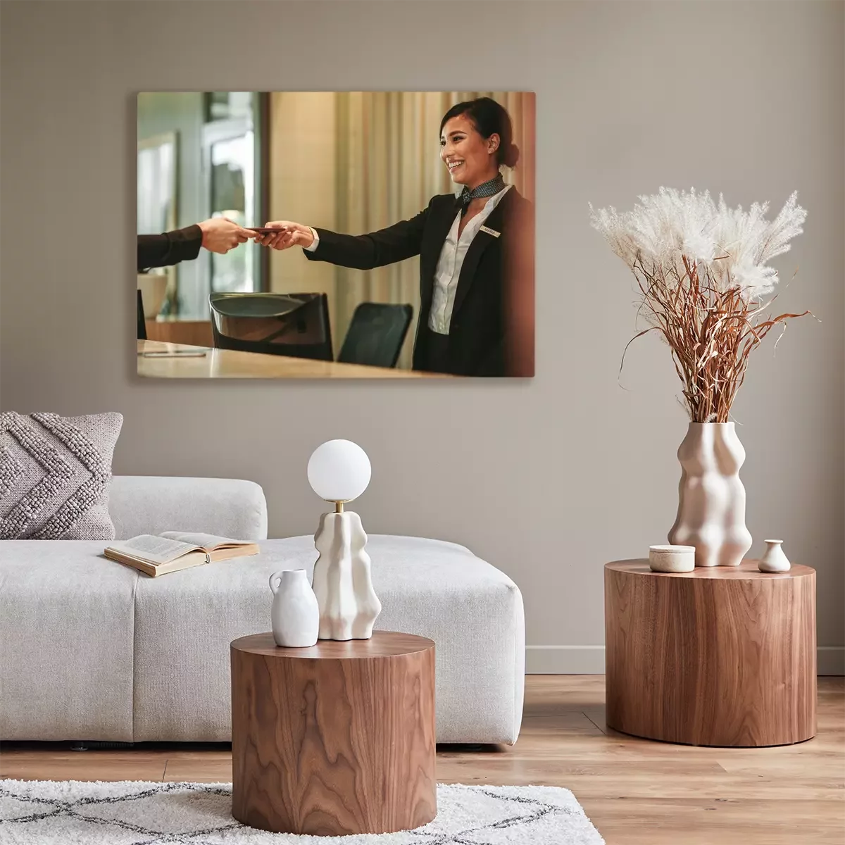 Tableau : Souriant réceptionniste assistant à l'hôtel