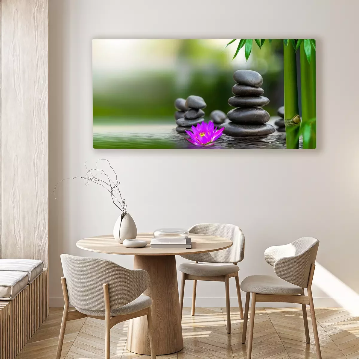 L'impression est réalisée sur une toile de haute qualité tendue sur un châssis. Puisque les bords latéraux de l’image sont également imprimés, il n'est pas nécessaire d'opter pour un cadre supplémentaire. Nous recommandons également les solutions composées de plusieurs images permettant de profiter d’une composition harmonieuse.