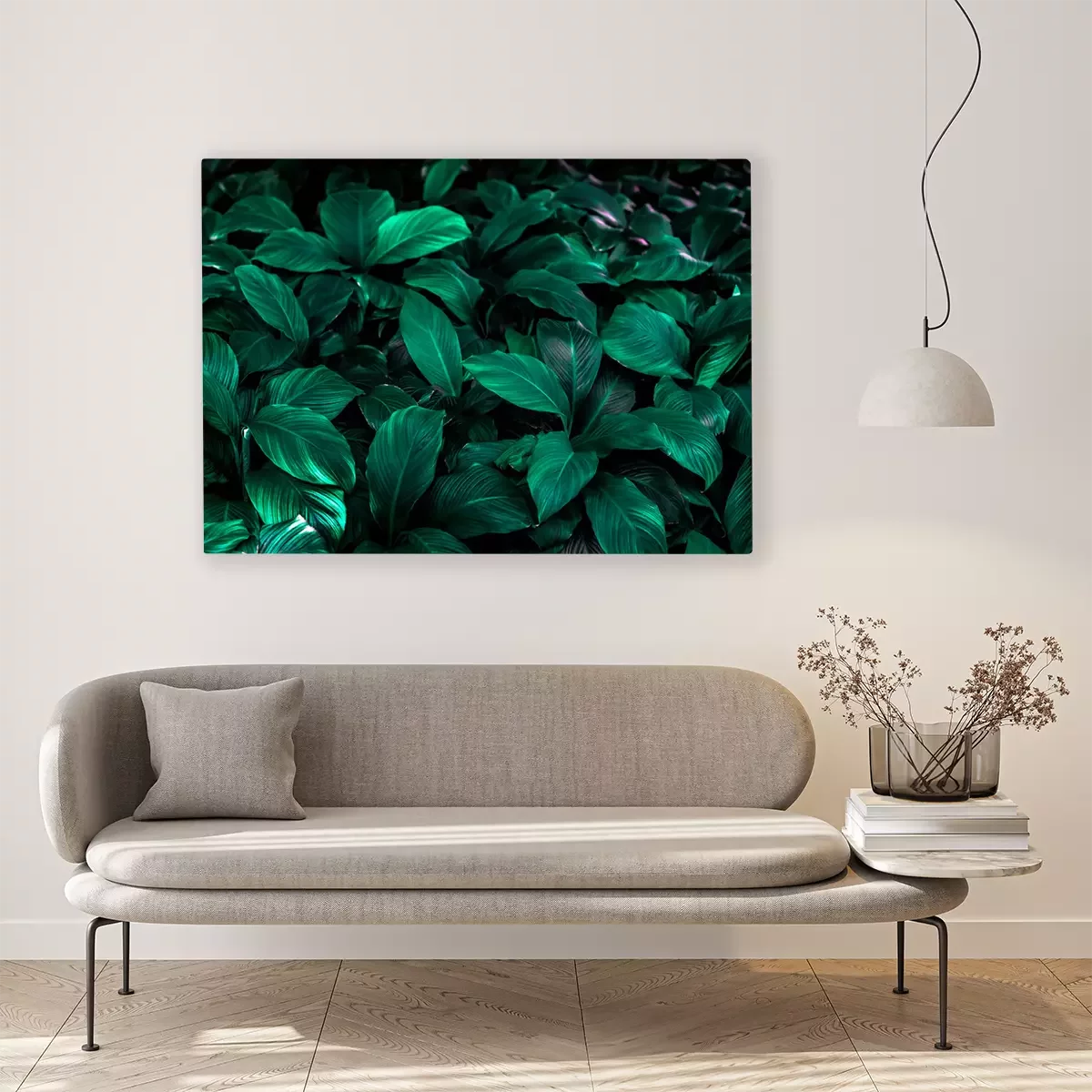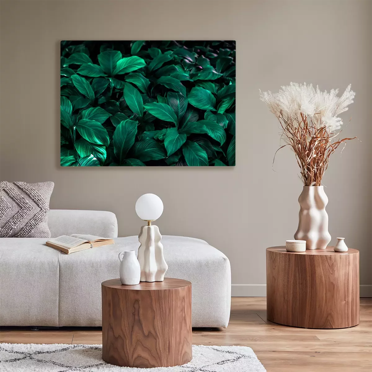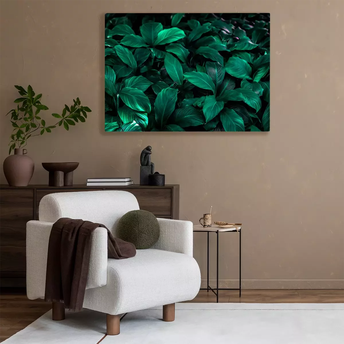 Tableau  Spathiphyllum cannifolium leaf concept, dark green abstract texture, natural background, tropical leaves in Asia and Thailand