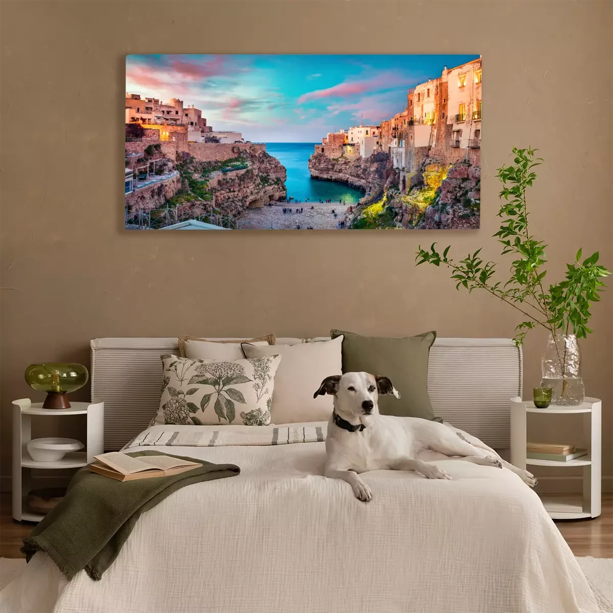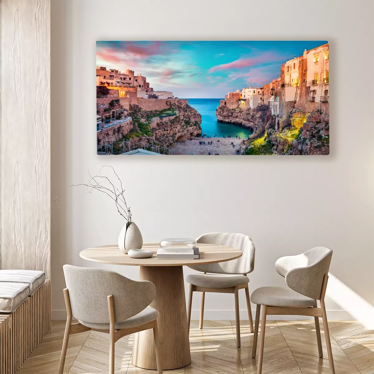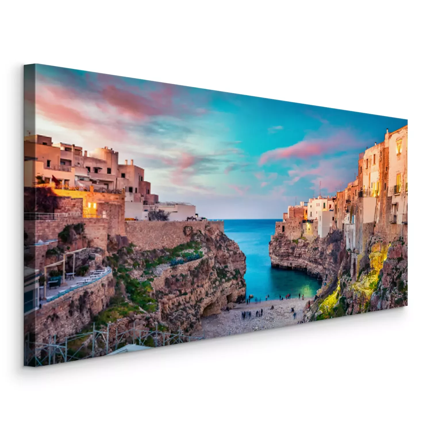 Tableau  Spectacular spring cityscape of Polignano a Mare town, Puglia region, Italy, Europe. Colorful evening seascape of Adriatic sea. Traveling concept background..