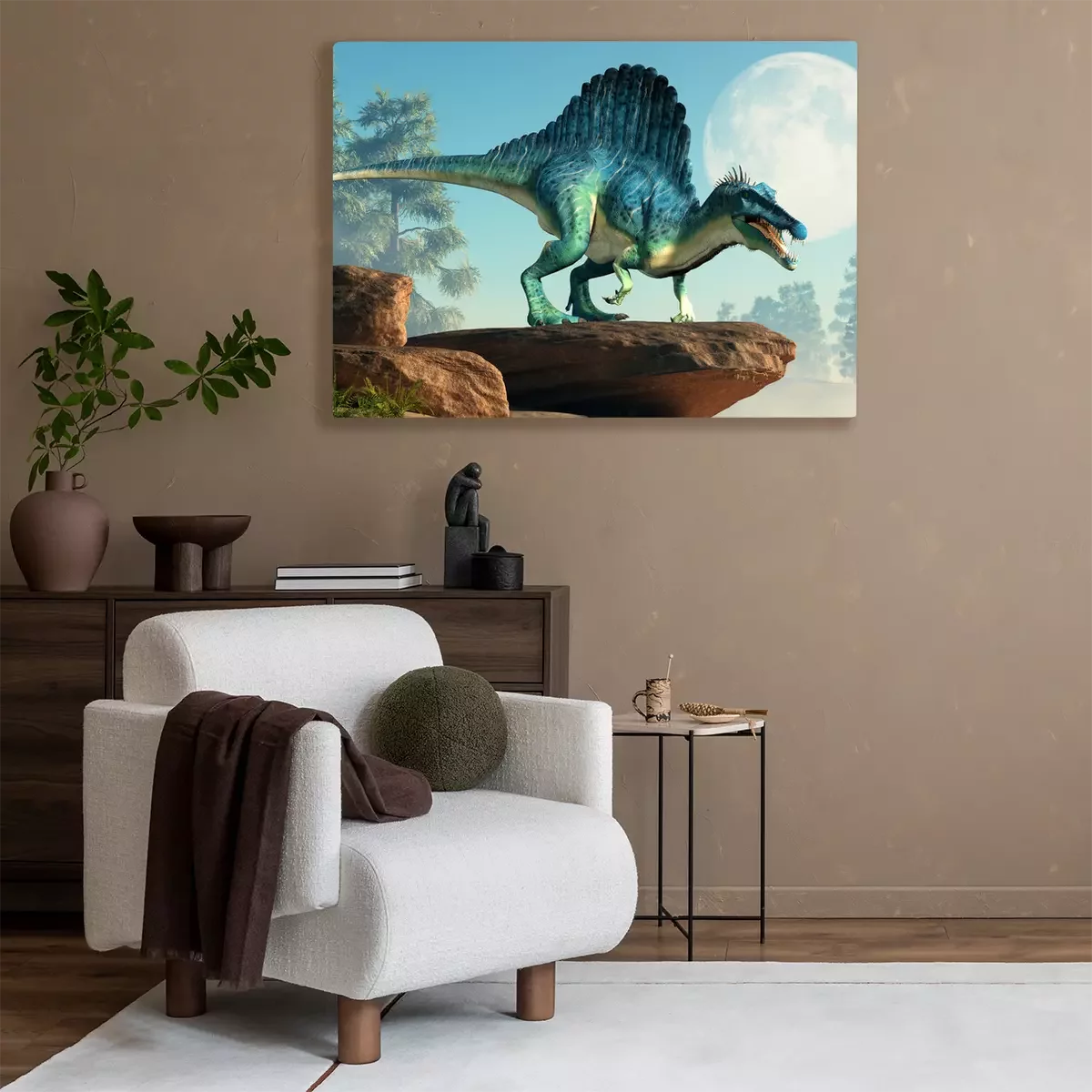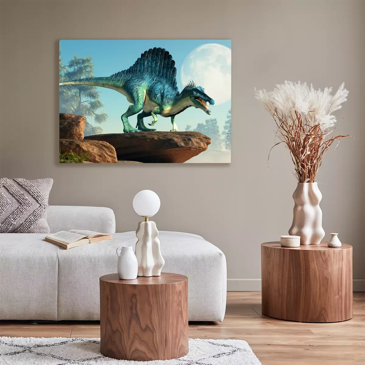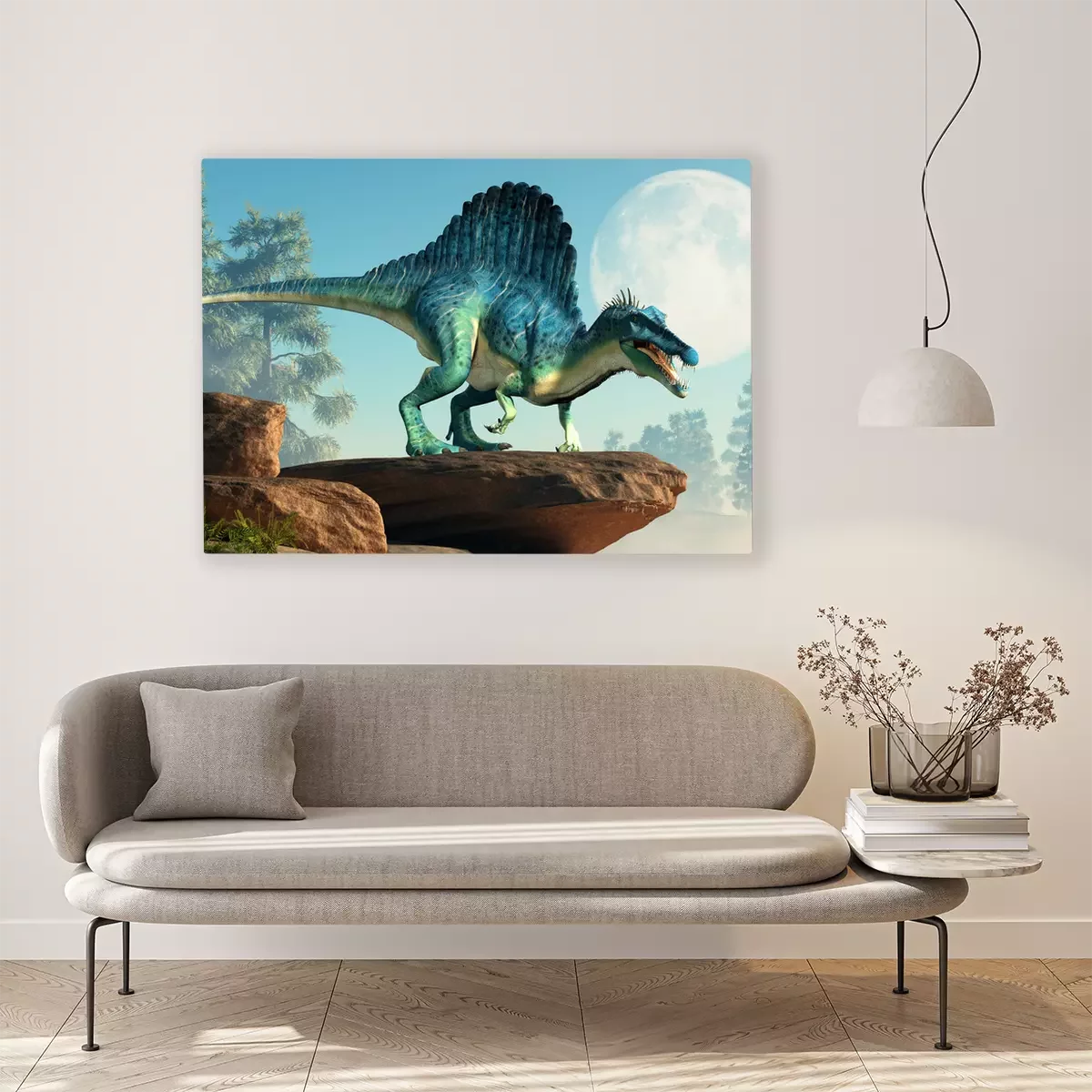 Tableau  Spinosaurus sur une falaise avec la lune en arrière-plan