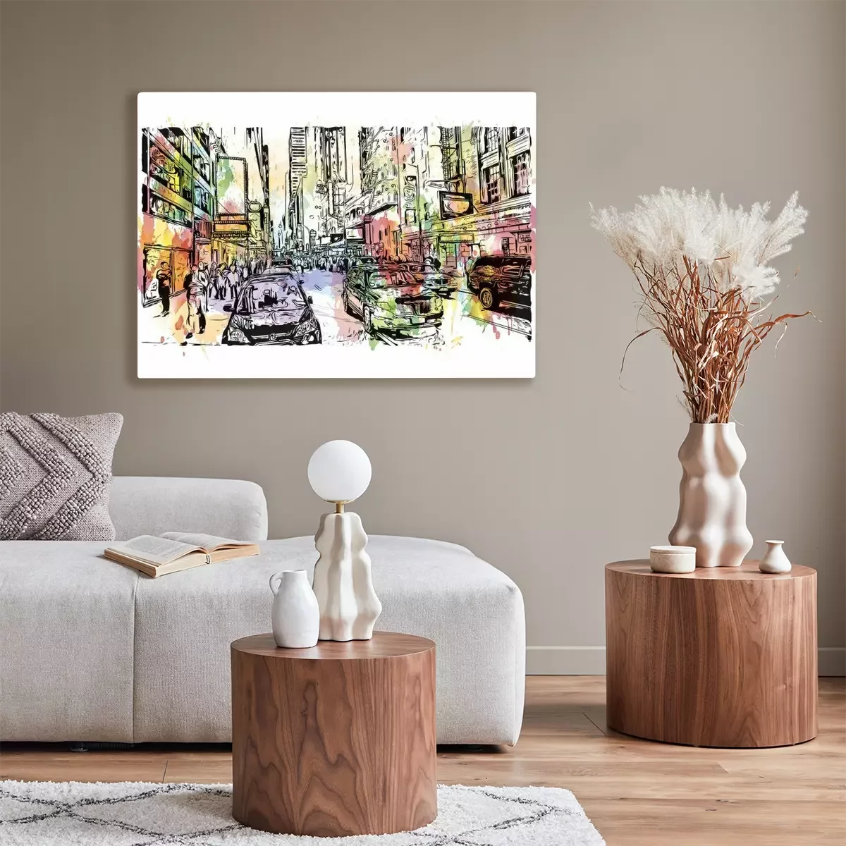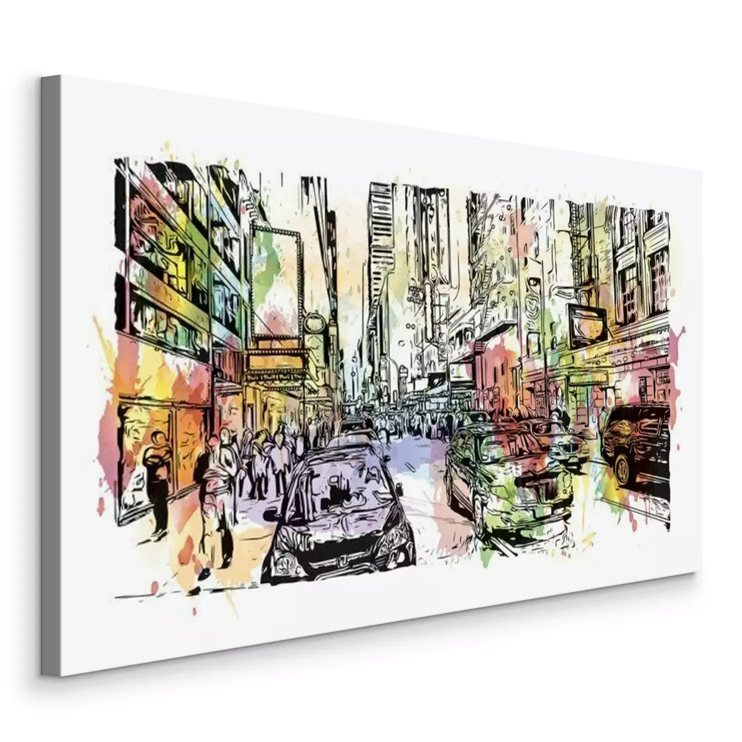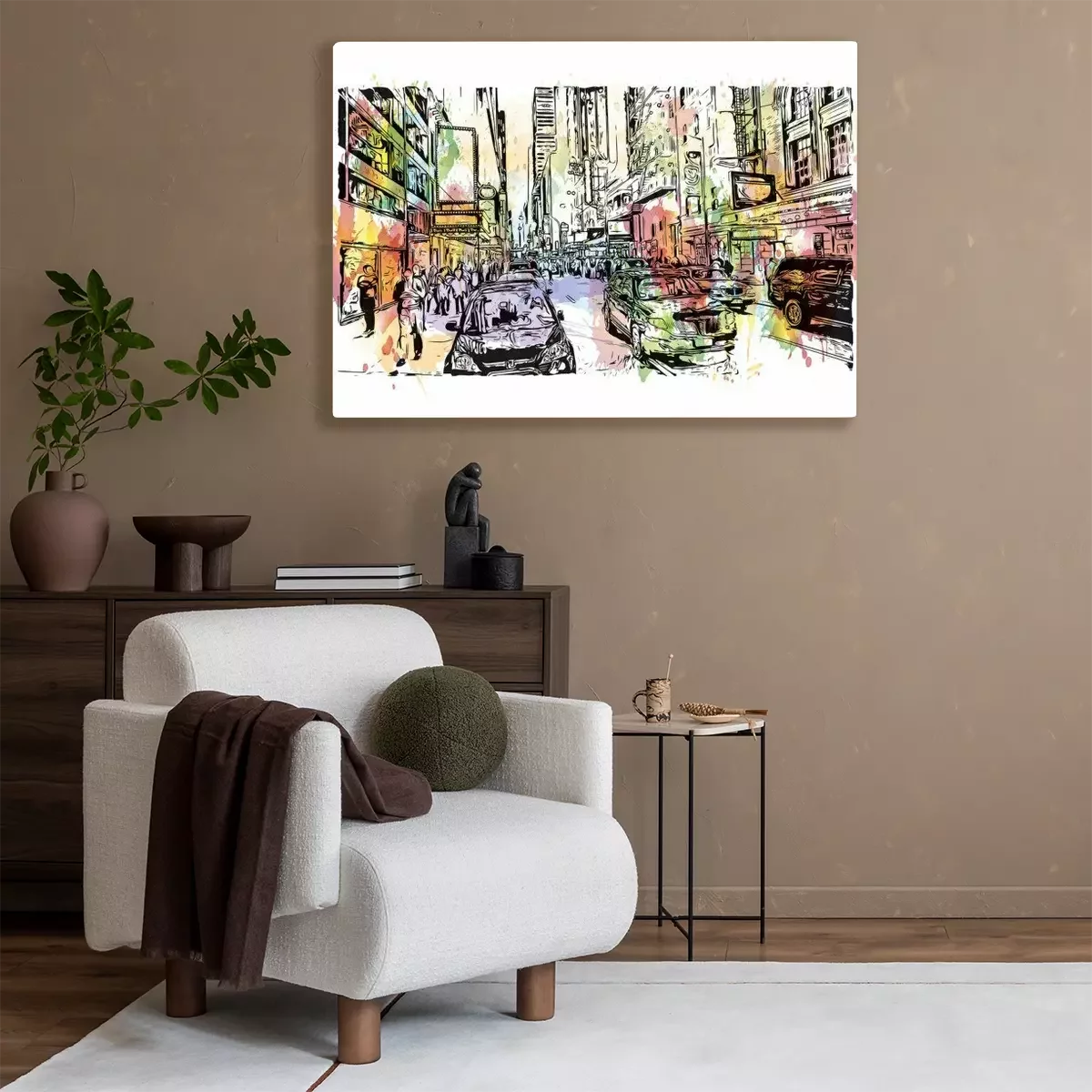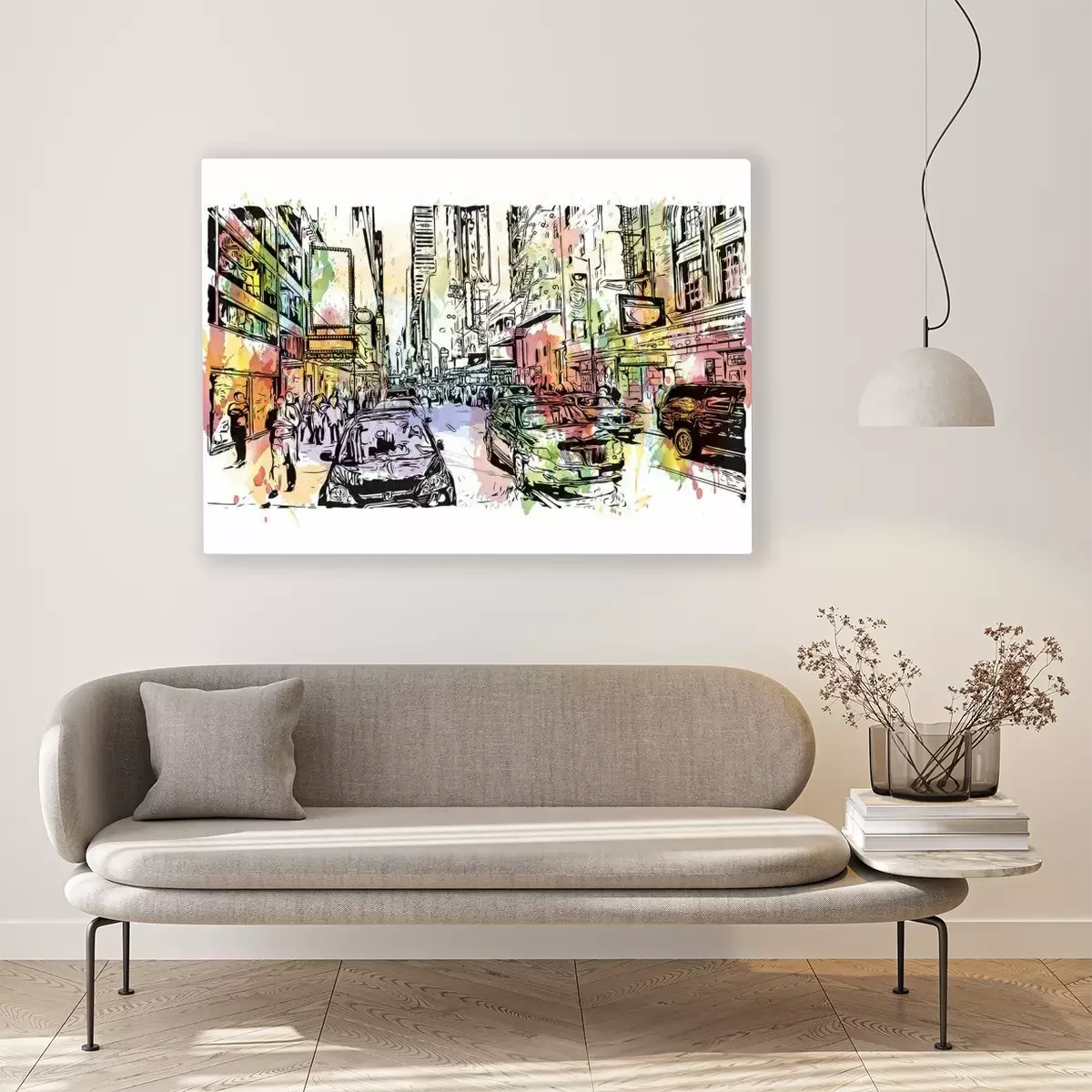 Tableau  Splash aquarelle avec croquis dessinés à la main de New York City, Usa en illustration vectorielle.
