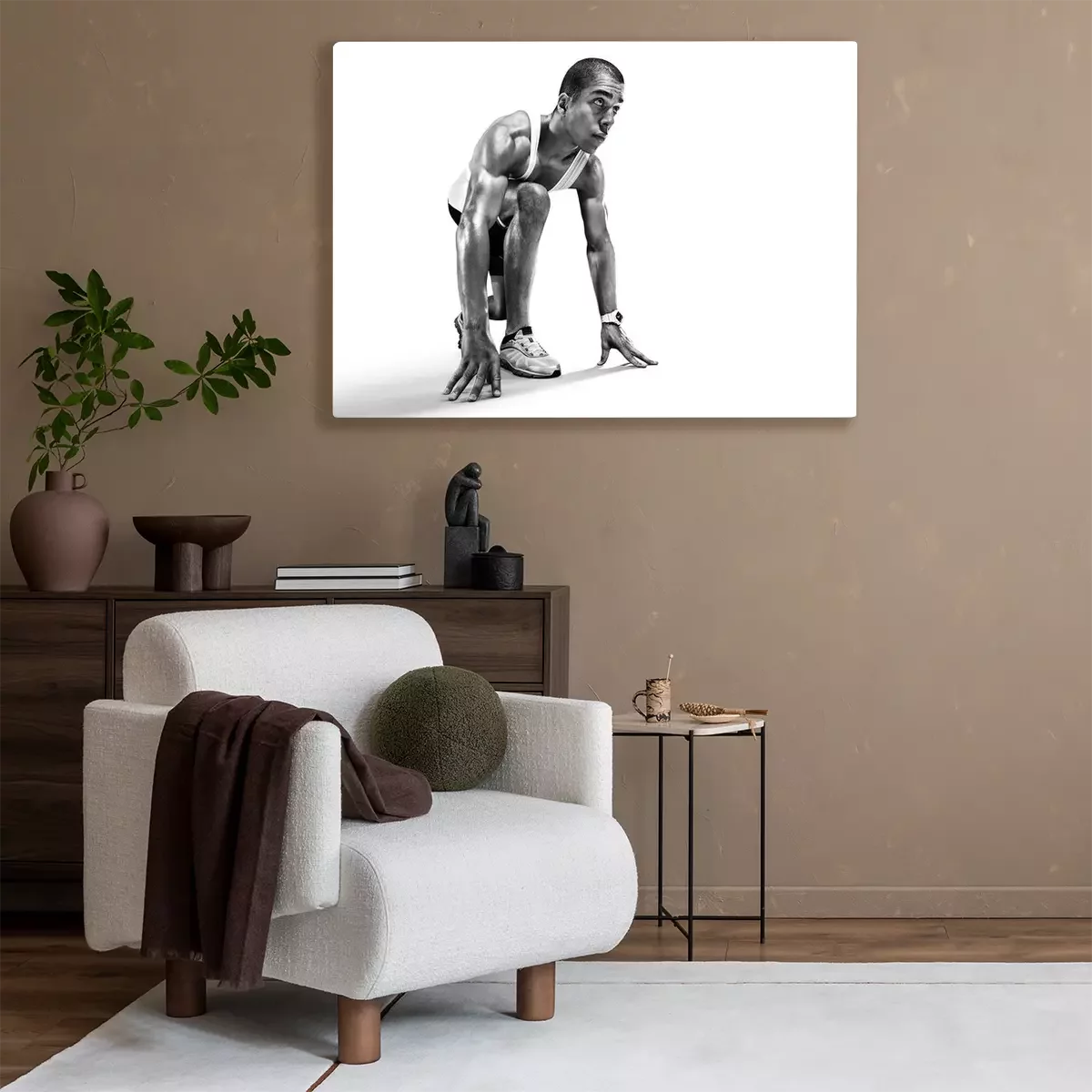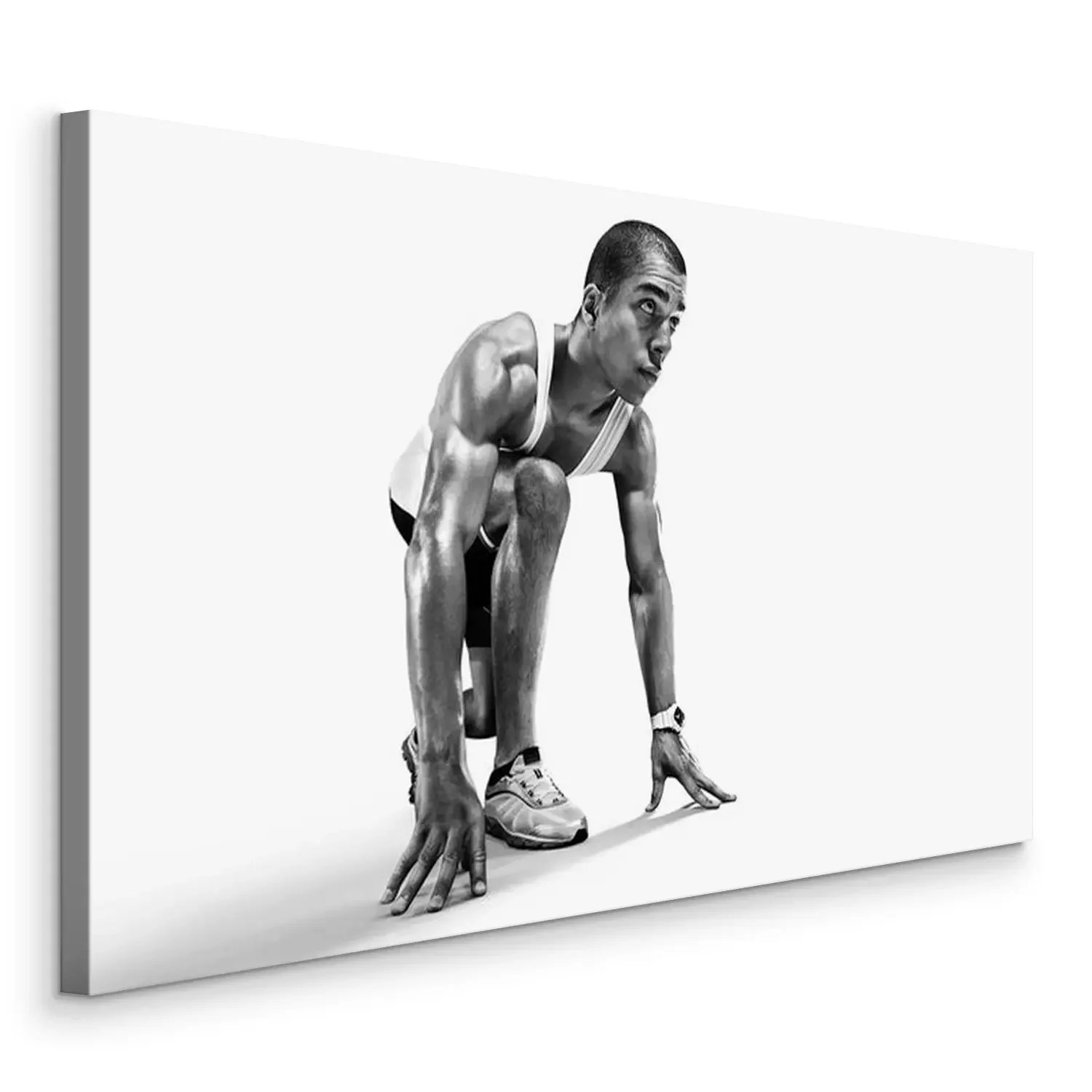 Tableau  Sports background. Runner on the start. Black and white image isolated on white.