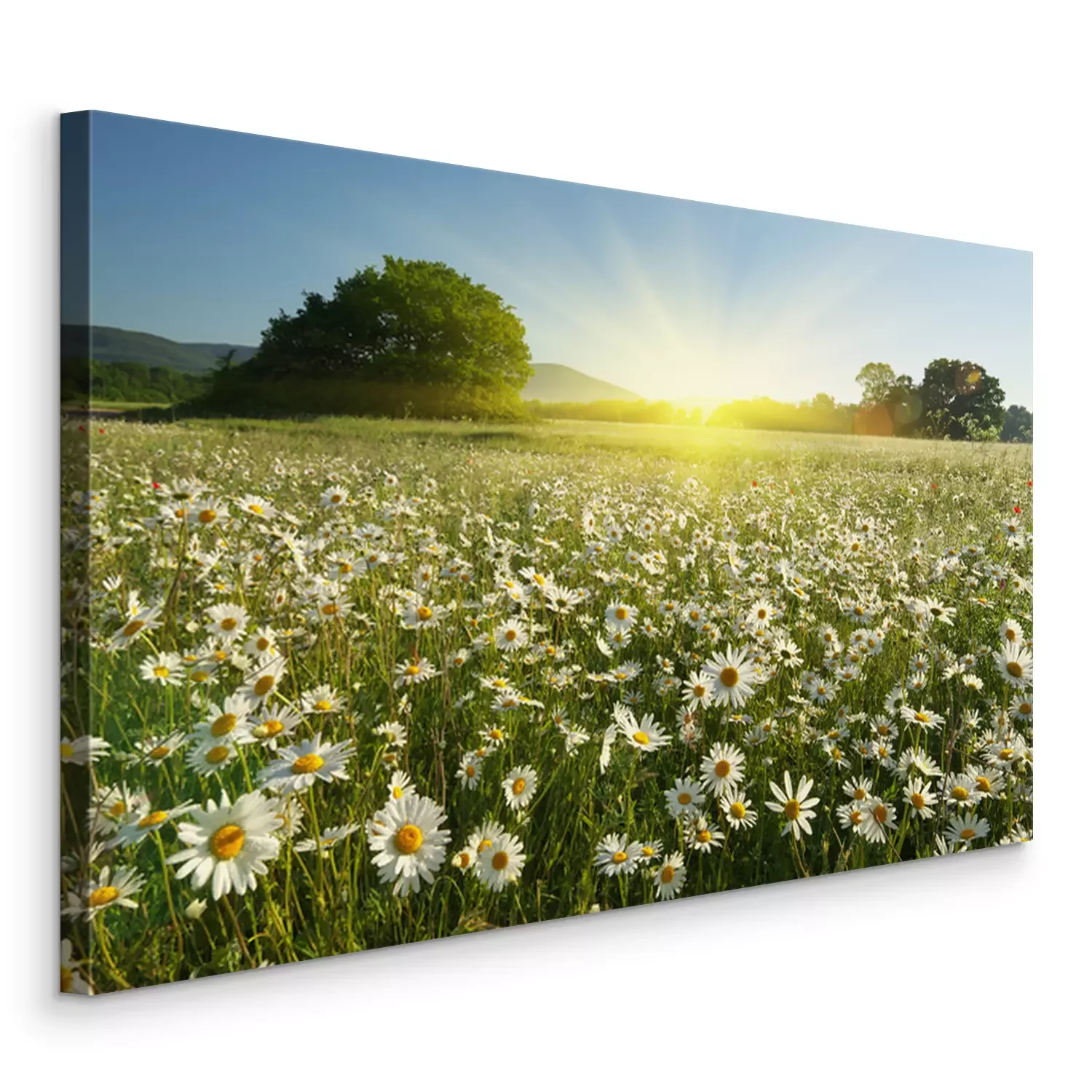 Tableau : Spring daisy flowers in meadow.