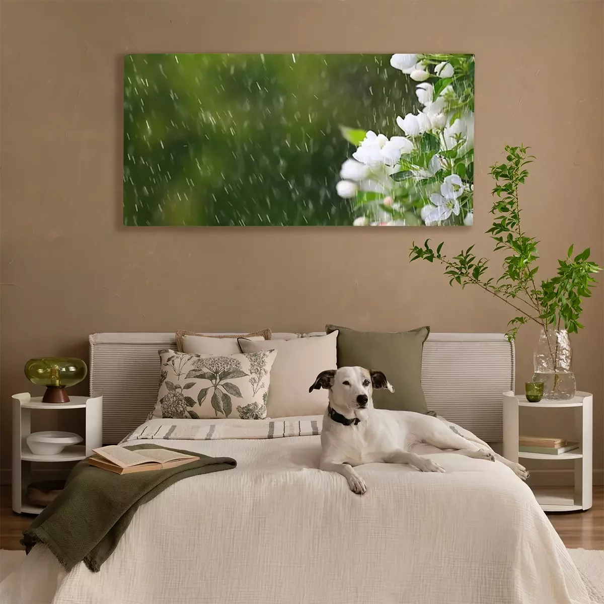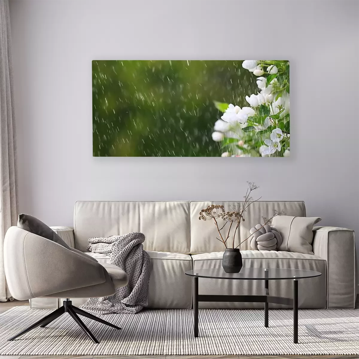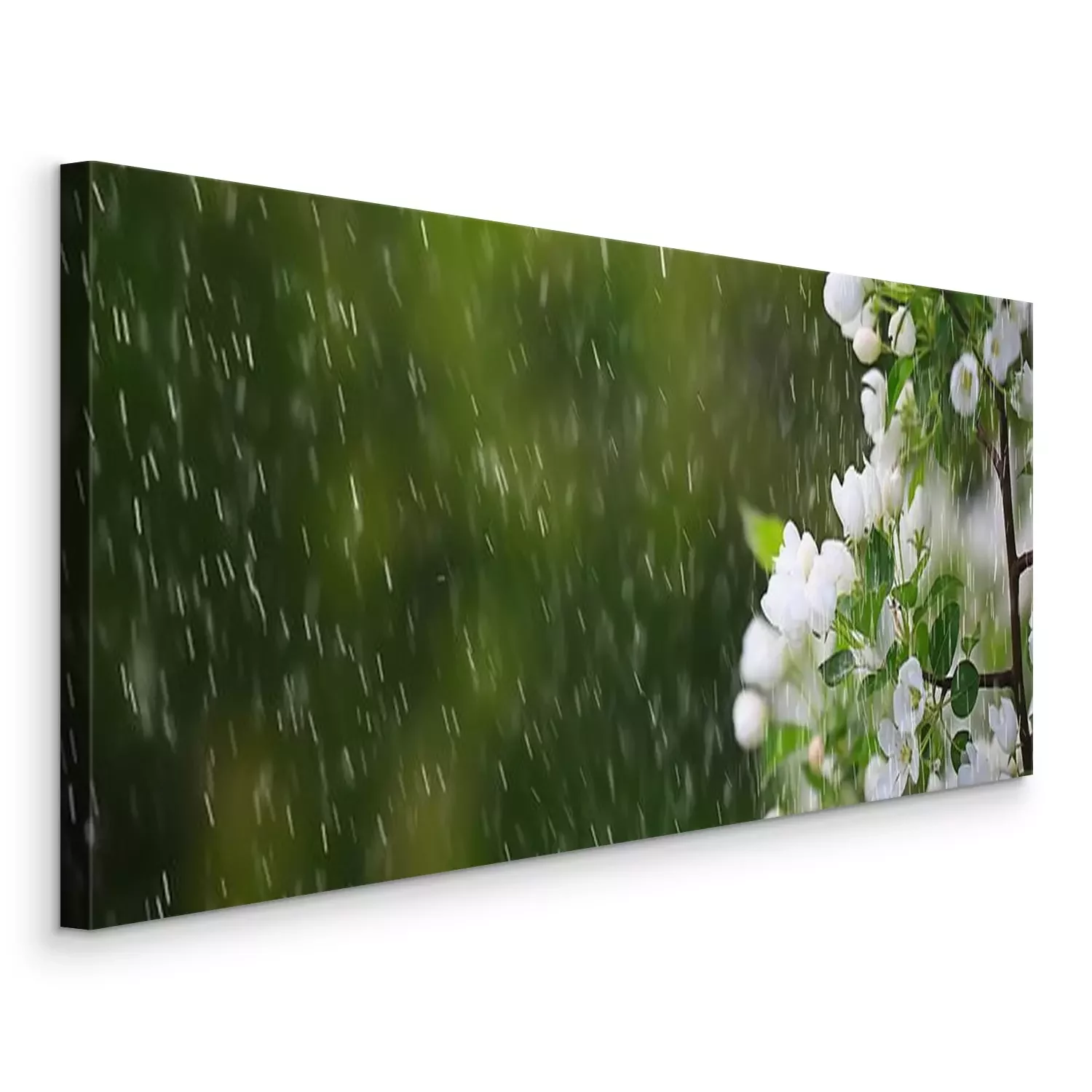 Tableau  spring flowers rain drops, abstract blurred background flowers fresh rain