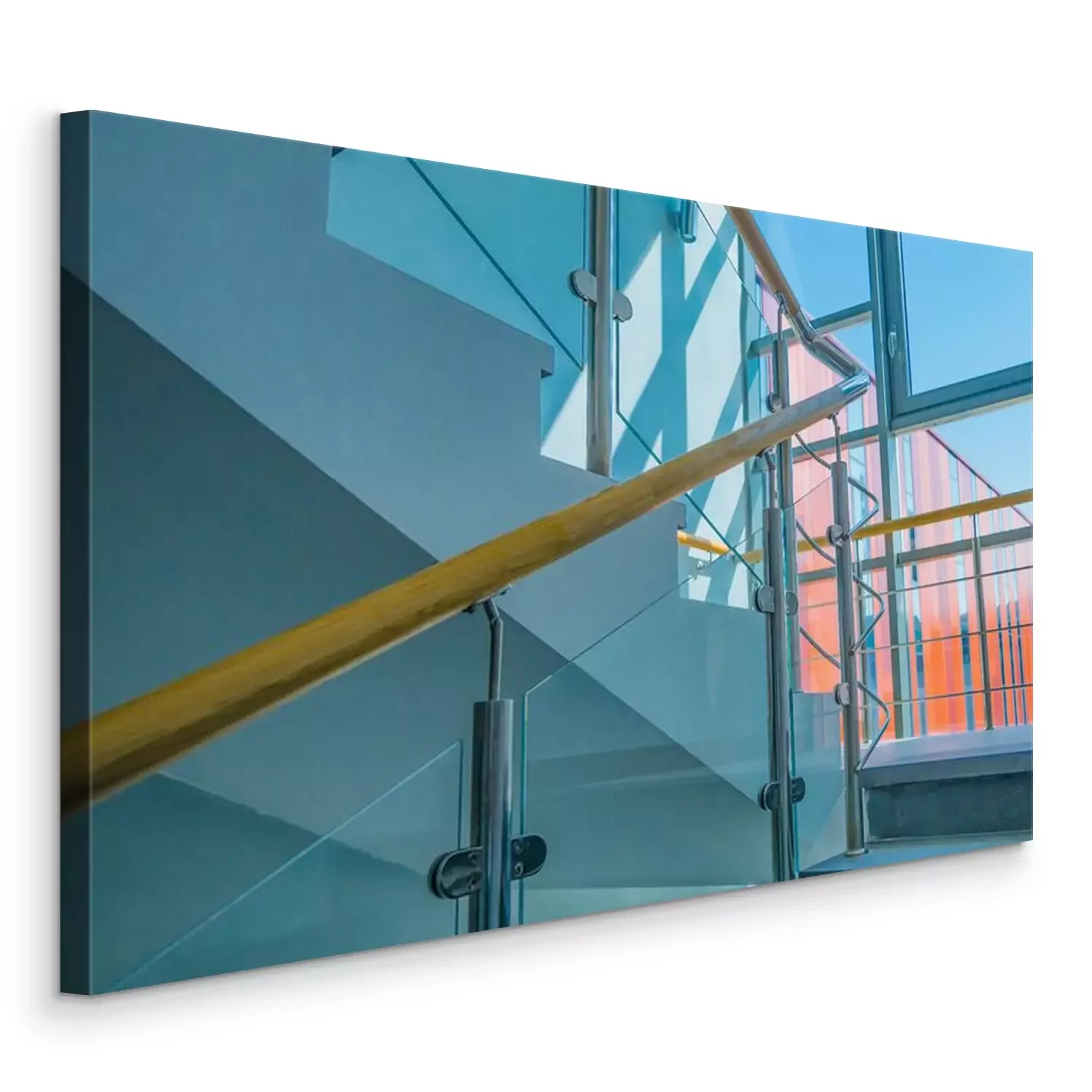 Tableau : Stainless steel, glass and wood railing.Fall Protection. modern design of handrail and staircase