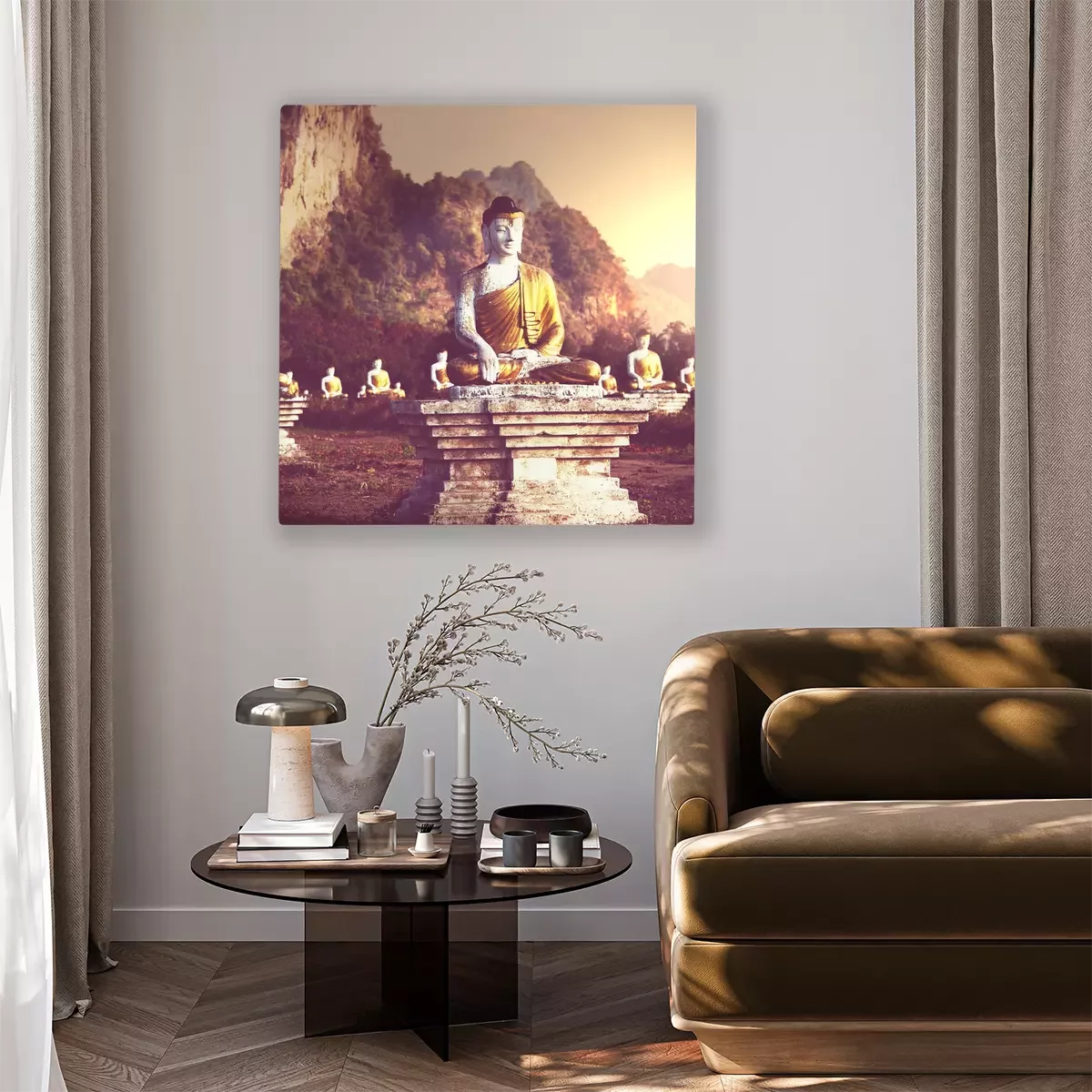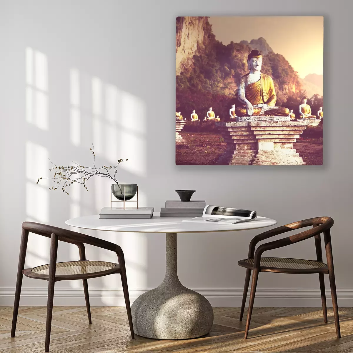 Tableau : Statues de Bouddha dans le parc