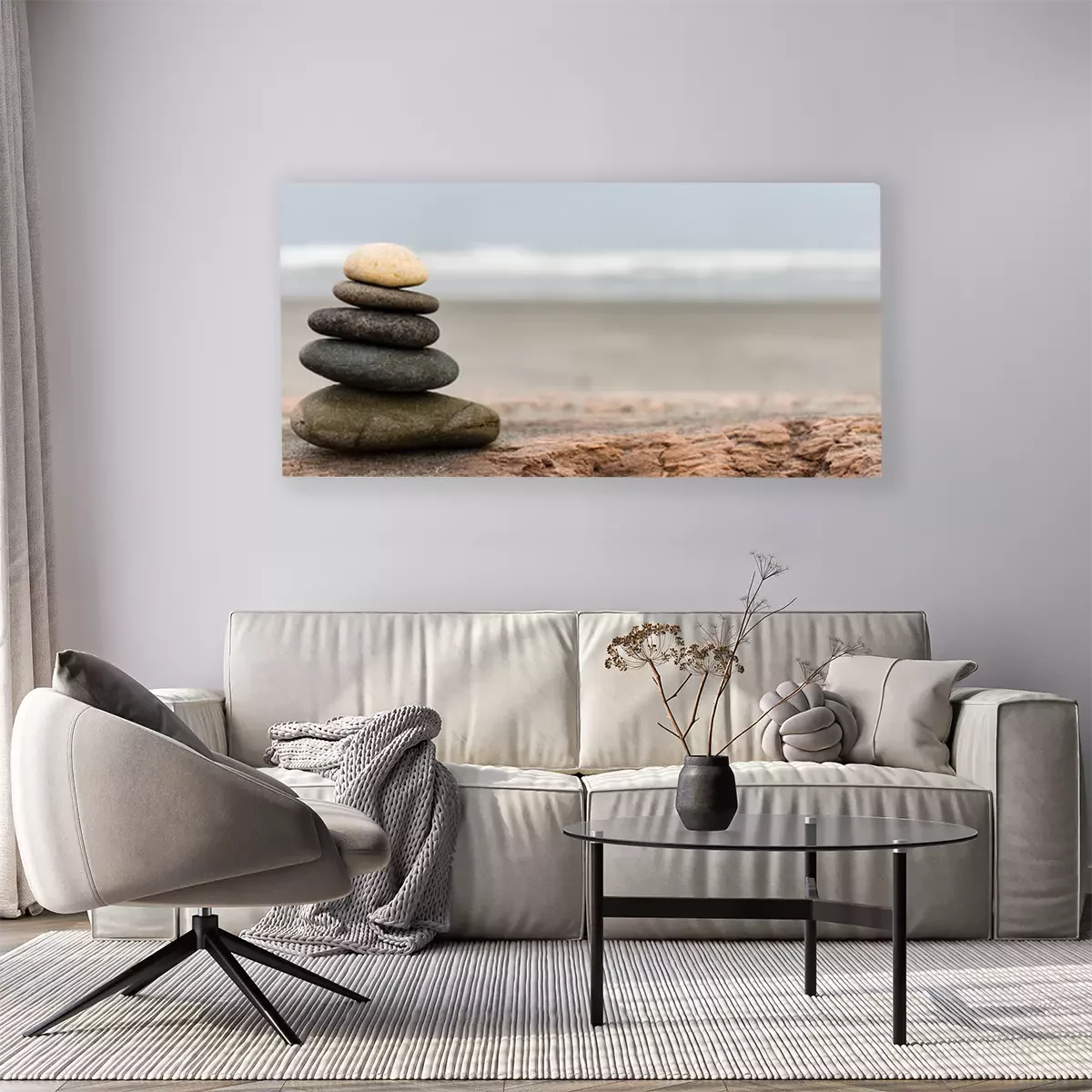 Tableau  Stein Stapel sur la plage Panorama