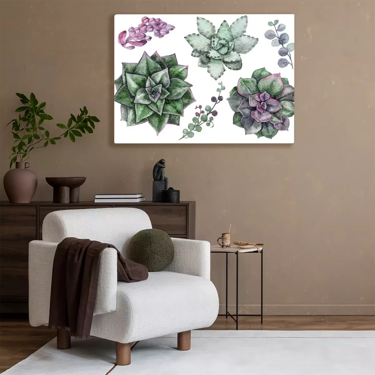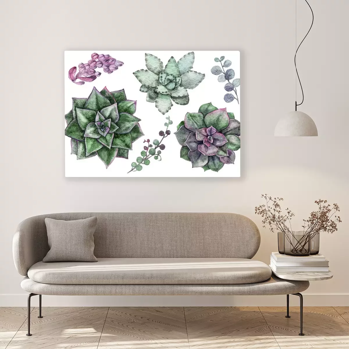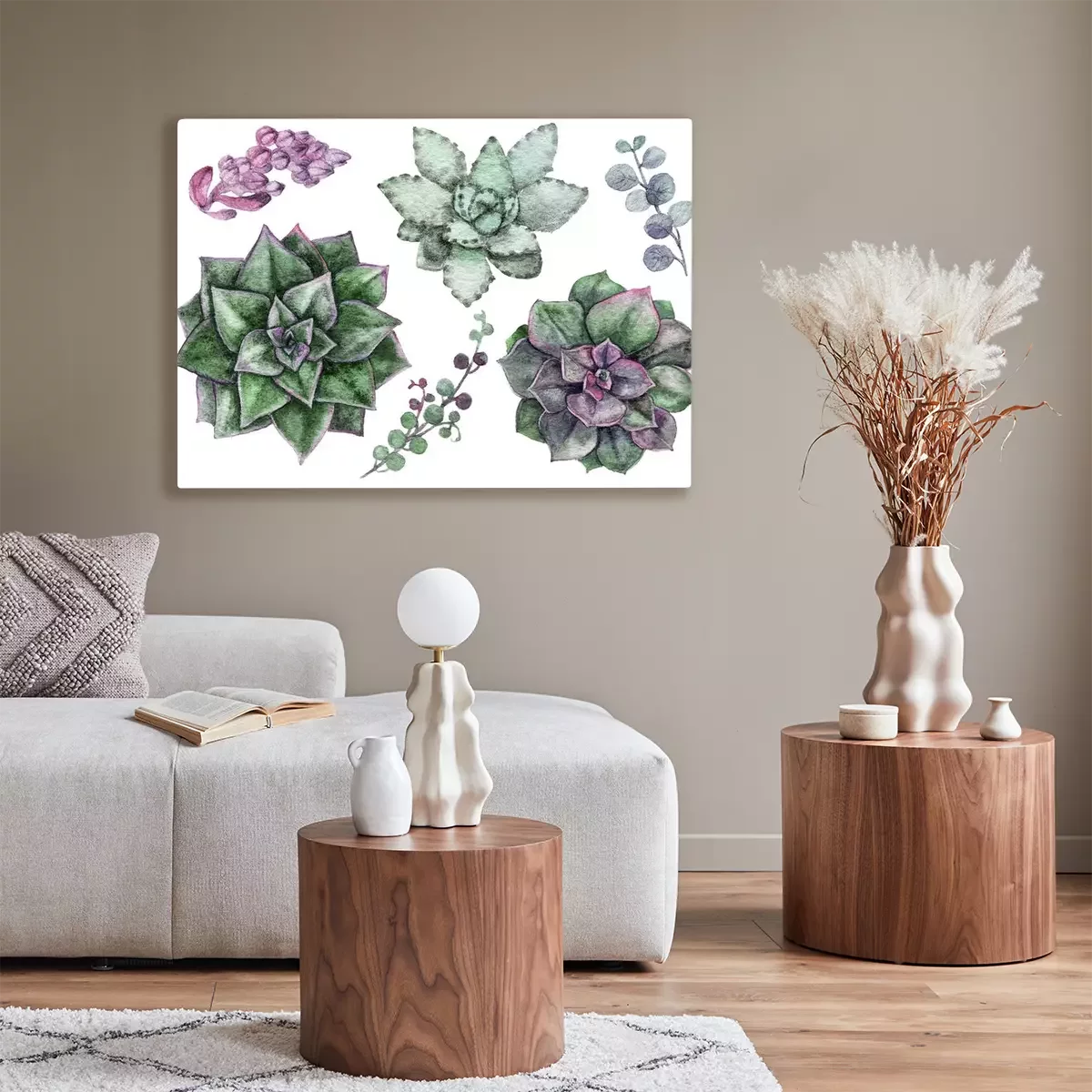 Tableau  Succulentes perles d'aquarelle délicates dans un style scandinave léger.