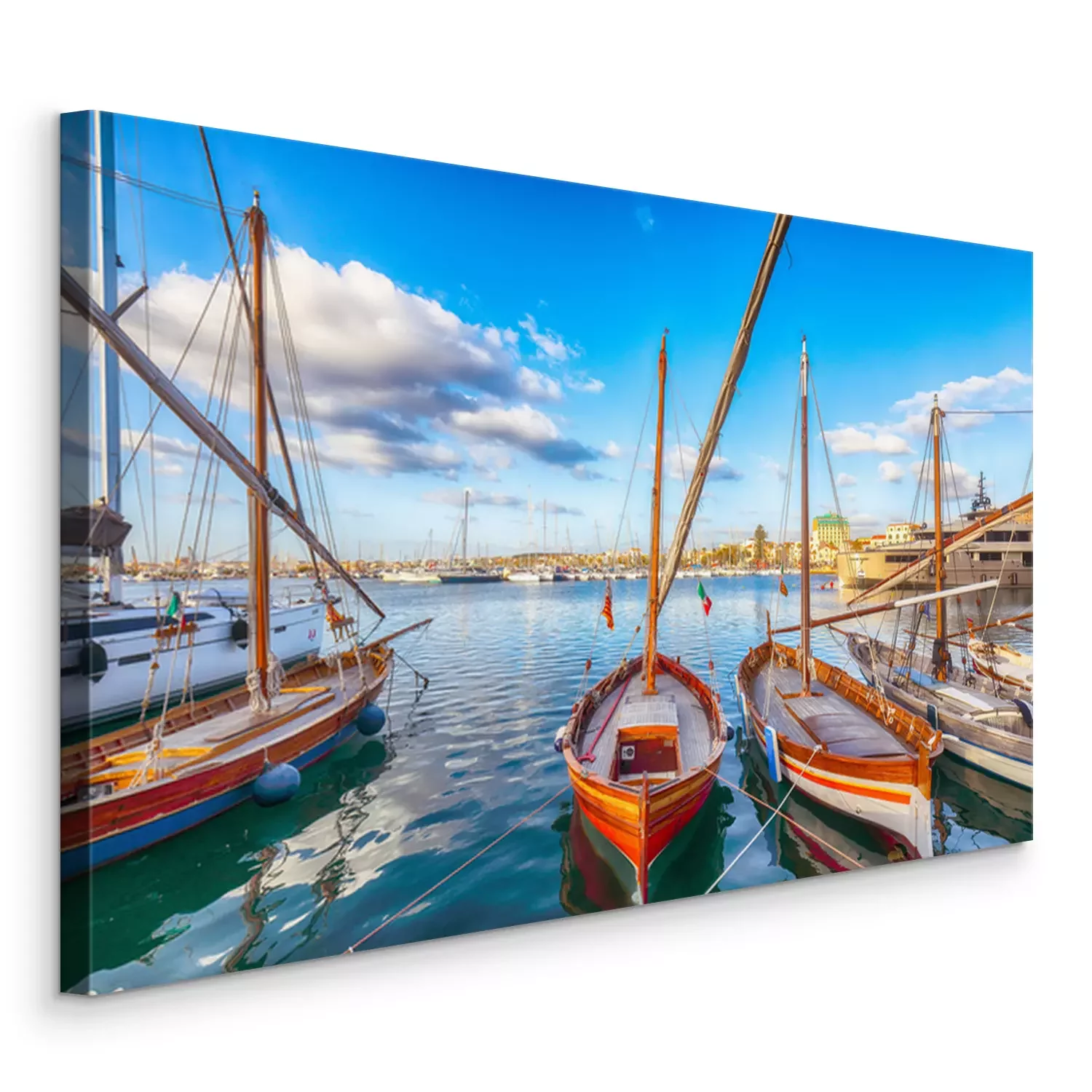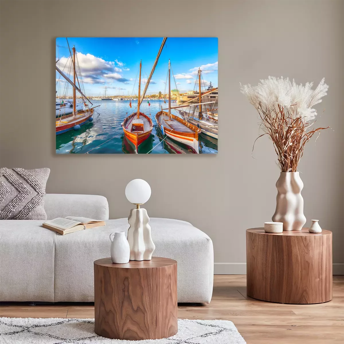 Tableau  Summer view of the Alghero Marina yacht port at the Gulf of Alghero with anchored sailboats