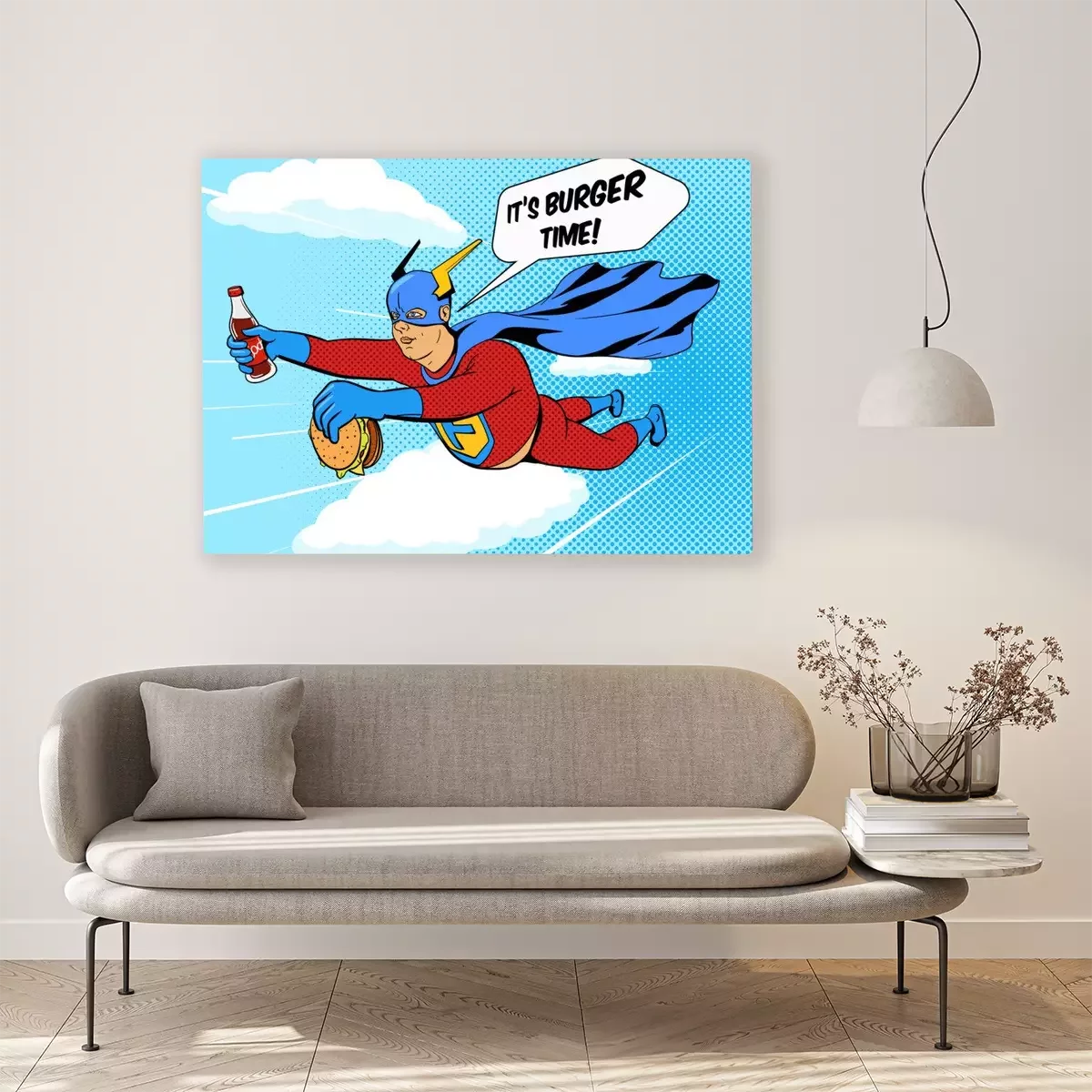 Tableau  Super-héros, gras, homme, hamburger, comique, Livre, vecteur
