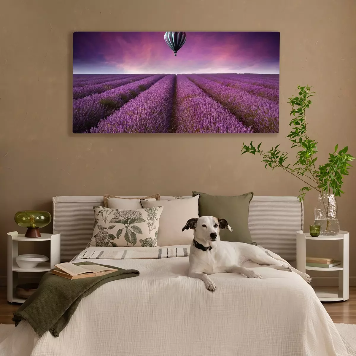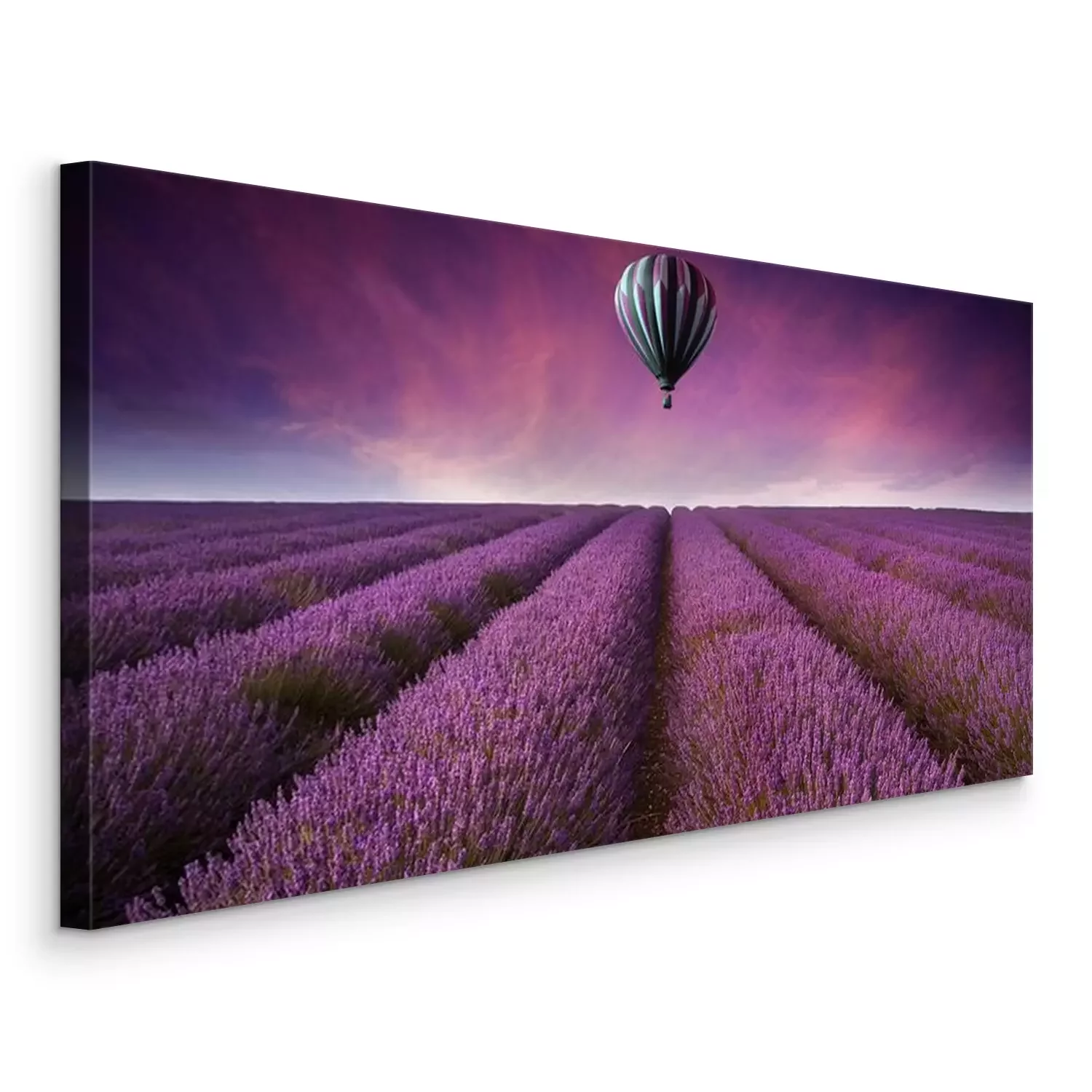 Tableau  Superbe champ de lavande coucher de soleil Paysage d'été avec bal air chaud