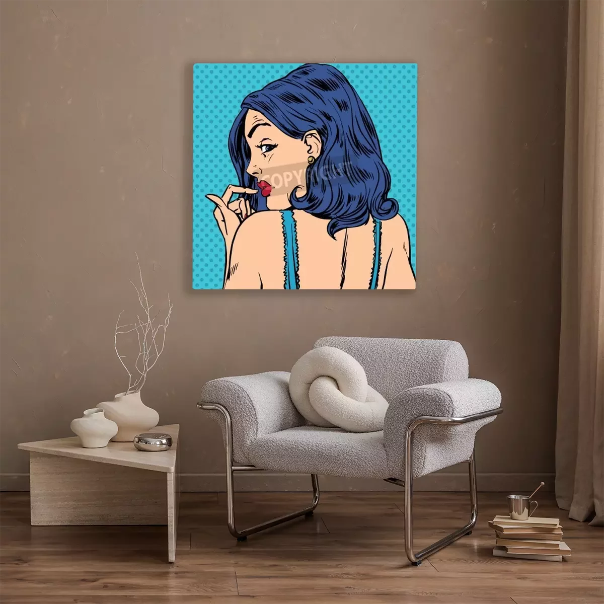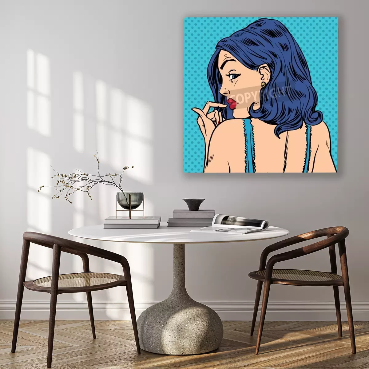 Tableau  Surprised woman regarde en arrière pop art comics style rétro Halftone. Imitation de vieilles illustrations