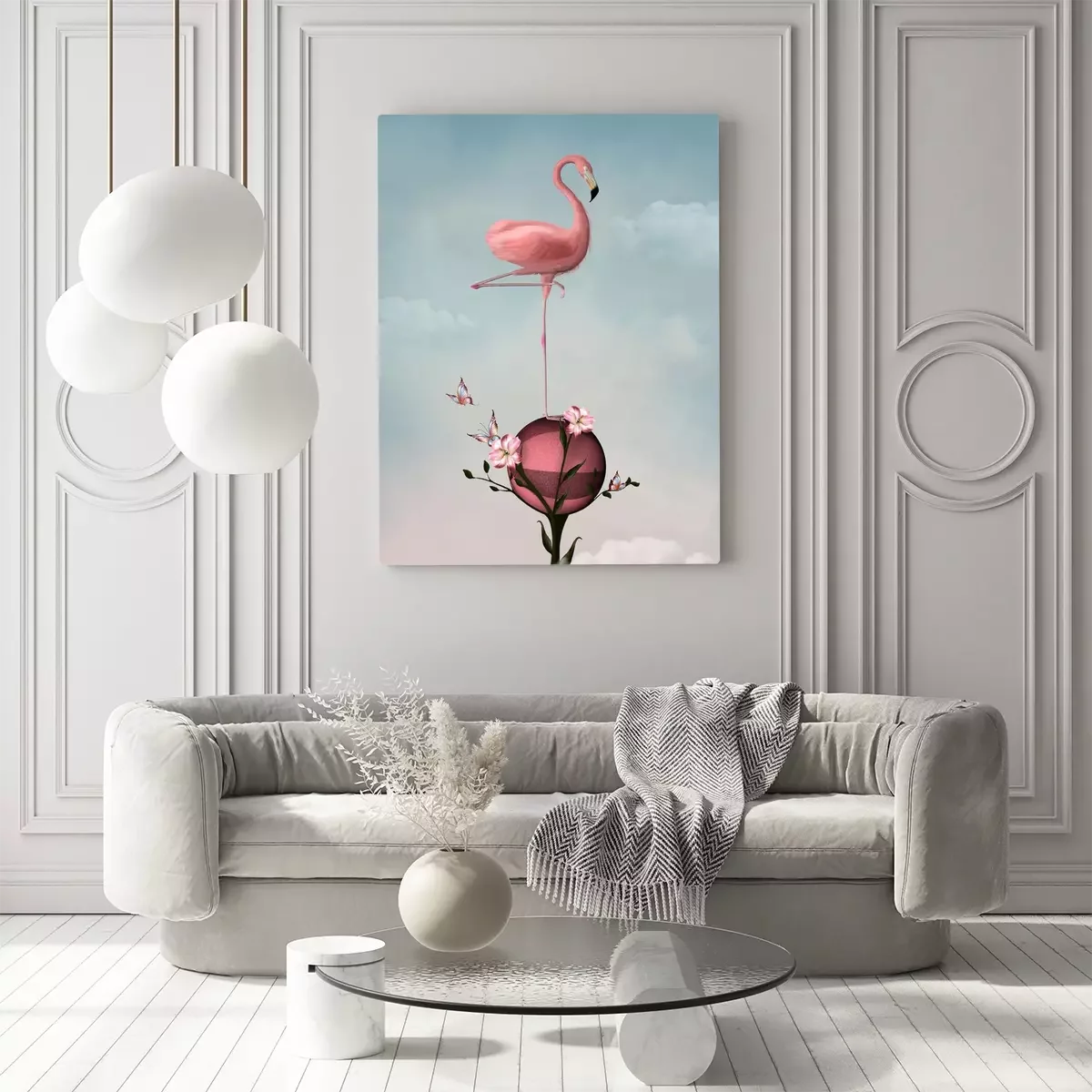 Tableau  Surréaliste, composition, flamant, fleurs