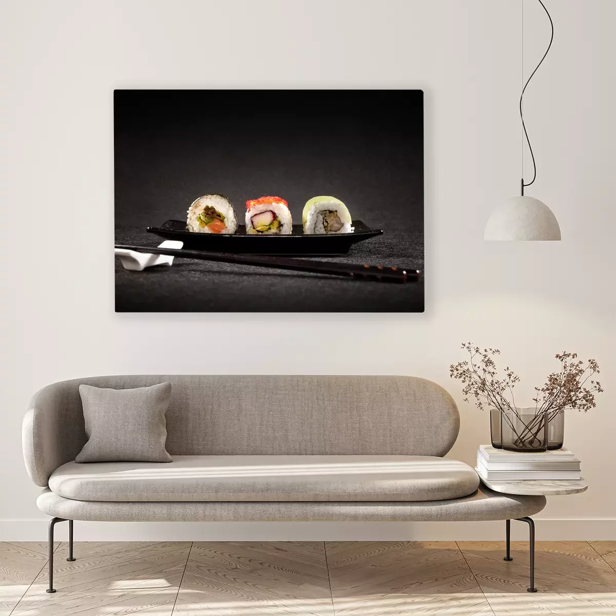 Tableau : Sushi luxueux sur fond noir - cuisine japonaise