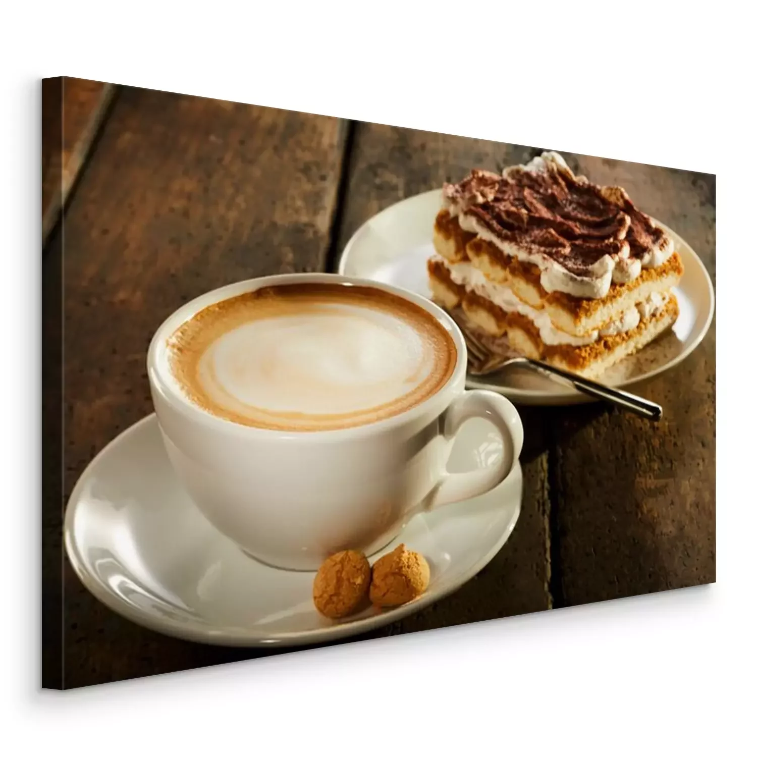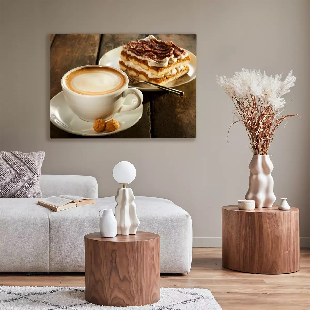 Tableau  Tasse de café au lait avec un morceau de gâteau