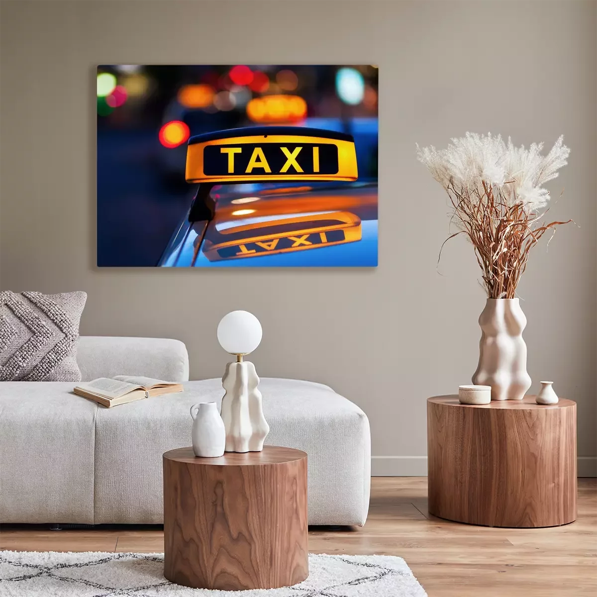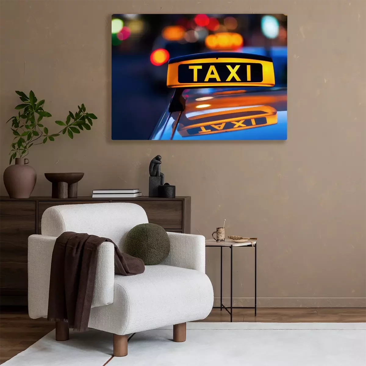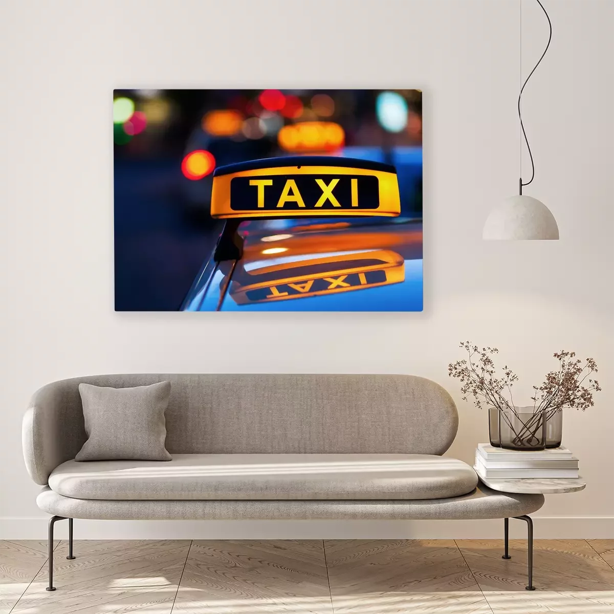 Tableau  Taxi, signe, toit, taxi, nuit
