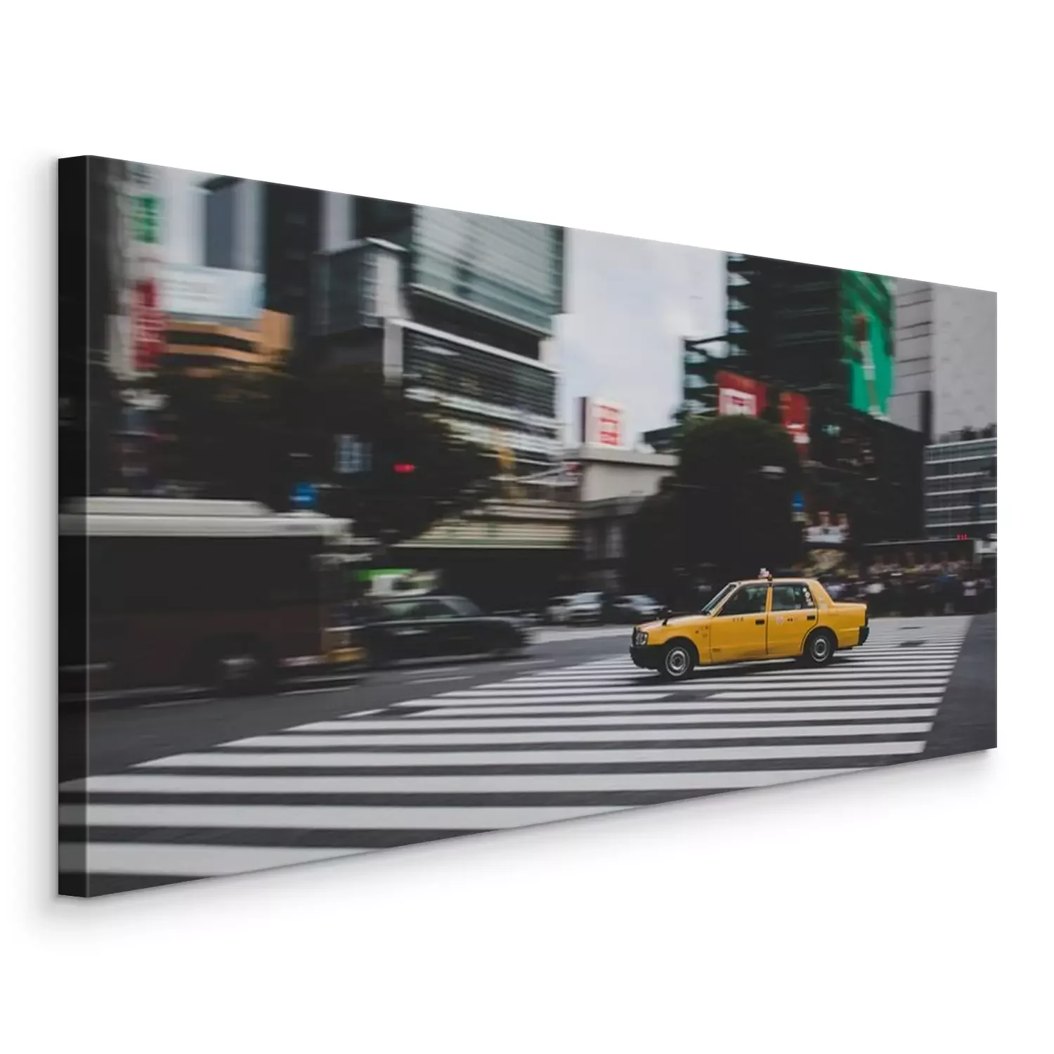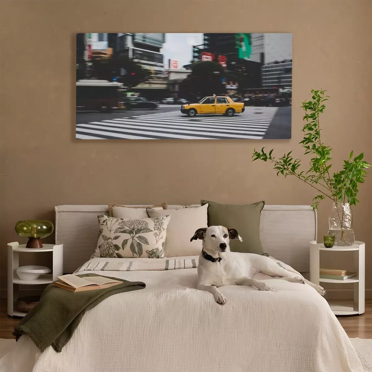 Tableau : Taxi speeding across Shibuya crossing in Tokyo Japan